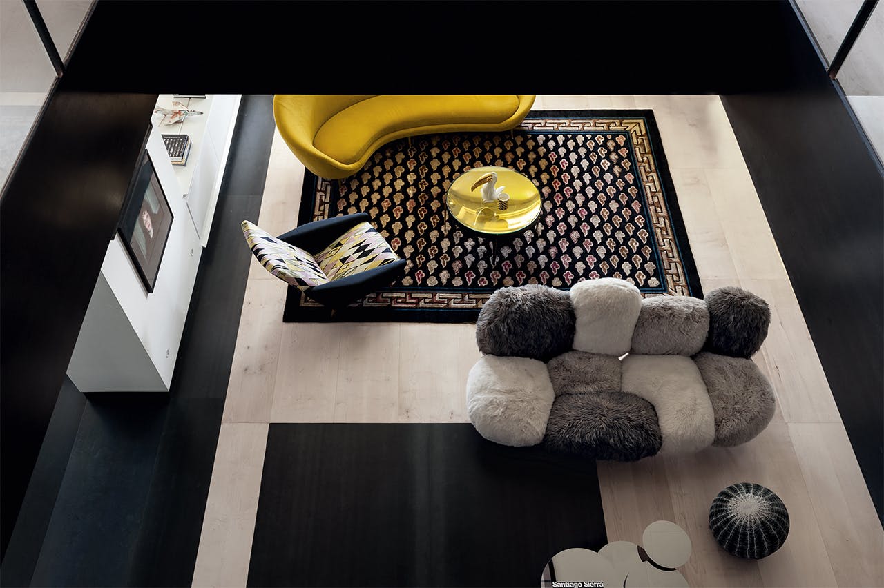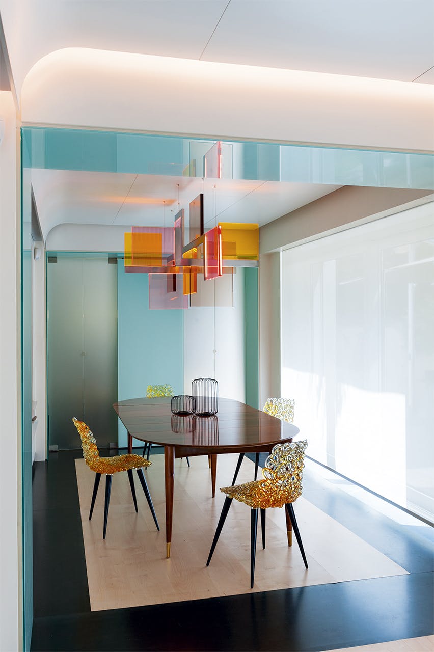 D’Alessandro a lié les deux appartements ensemble à un appartement de 450 m2 sur deux niveaux. Il a les deux étages à jouer ensemble en créant une forte connexion entre le sol au premier étage et le plafond au deuxième étage, qui sont tous deux tenus dans des érables lumineux.