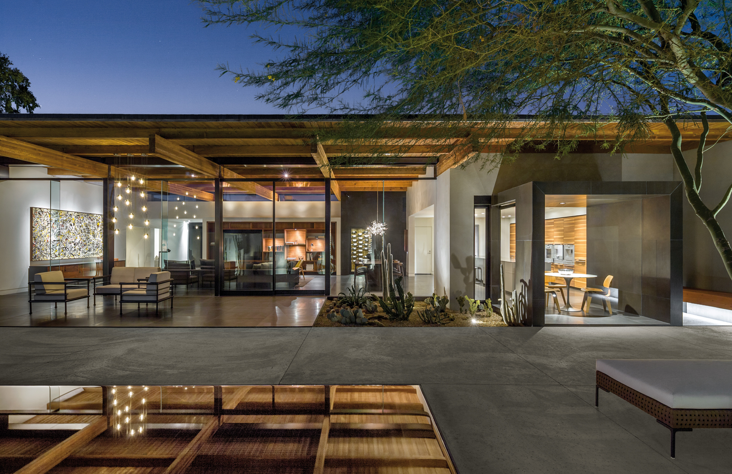 Qu’en est-il de ce rapport ? C’est d’abord un rapport contextué, installé dans la ville relativement jeune de Phoenix, et cet état, l’Arizona, dont le climat s’appréhende comme un véritable laboratoire d’expériences. Sans s’enfermer pour autant sur ce territoire seul, Darren Petrucci et son équipe peuvent d’ici entamer les études et recherches qui préoccupent leur métier, à savoir la complexité du contexte environnemental. Chaque site devient alors un terrain d’études, un corpus, qui pourra permettre de découvrir d’autres solutions et d’apporter des réponses concrètes aux clients qui, comme eux, s’intéressent à l’architecture. Une architecture moderne, bâtie dans sa relation à l’environnement et par extension dans son rapport au monde.