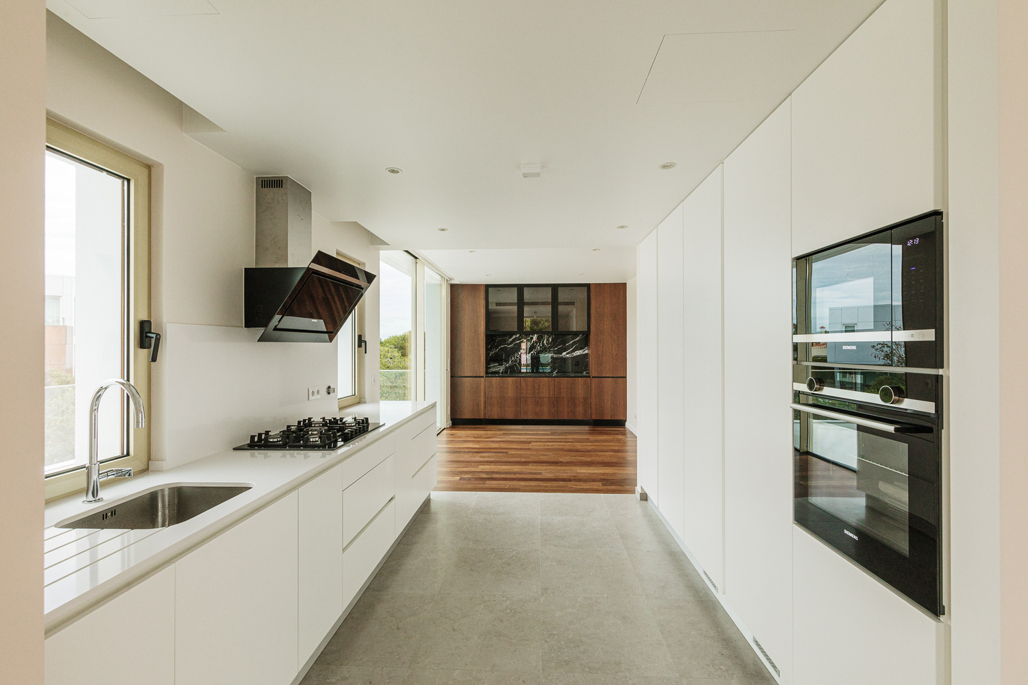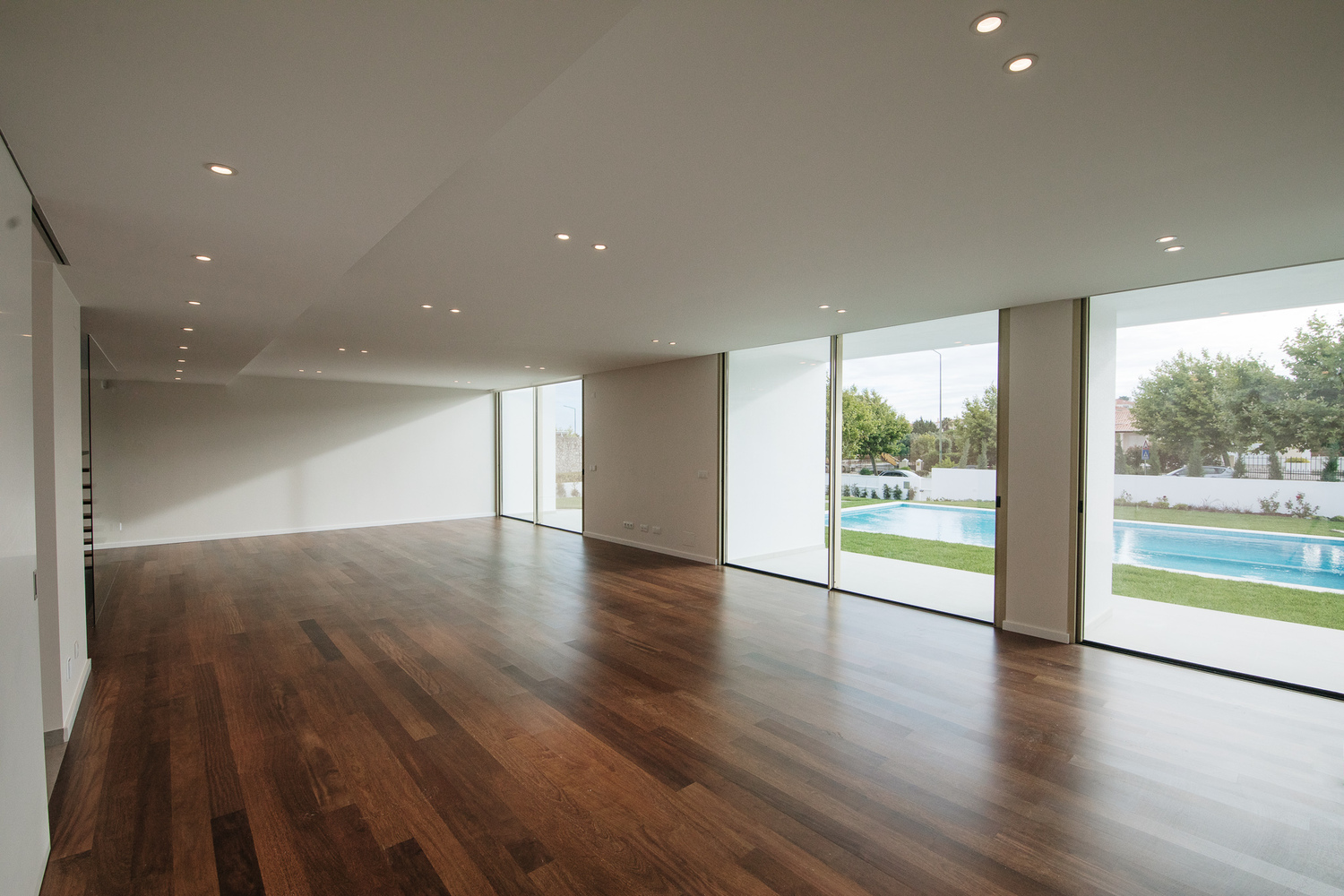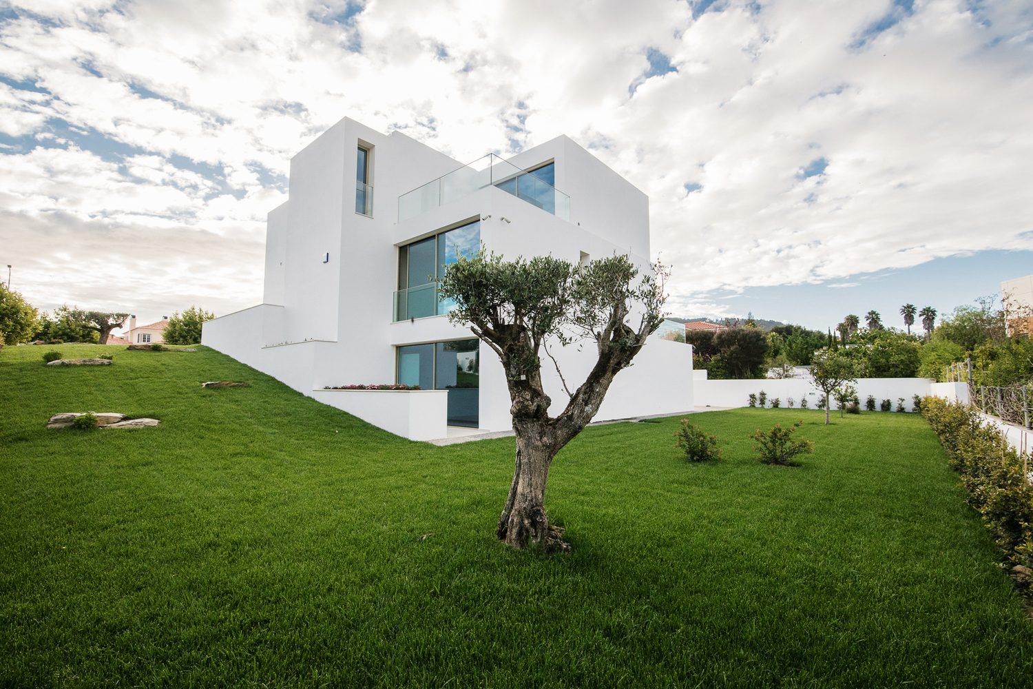 La palette de matériaux utilisée est minimisée, la recherche simplifie le langage architectural pour améliorer pleinement le concept, mais sans sacrifier la fonctionnalité et la pertinence de la sélection. La maçonnerie en pierre locale devient le protagoniste, comme vous pouvez le trouver dans le mur de l’escalier qui relie le plancher en bois. Extérieurement, le rendu blanc caractérise les volumes, contrastant avec le jardin en pelouse verte et l’immense piscine commandant la parcelle. Tous les espaces extérieurs sont articulés par ceux du logement, même avec la connexion des oliviers, rendant l’environnement continu, avec un confort et une habitabilité élevés.