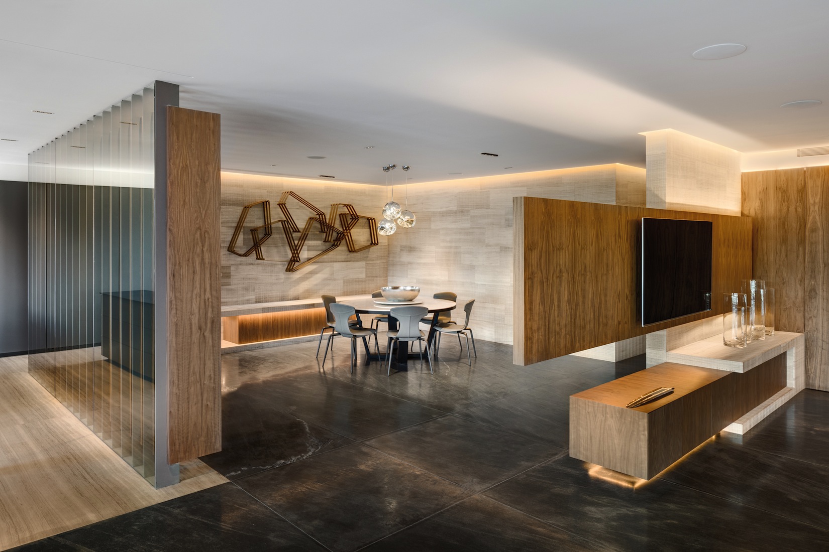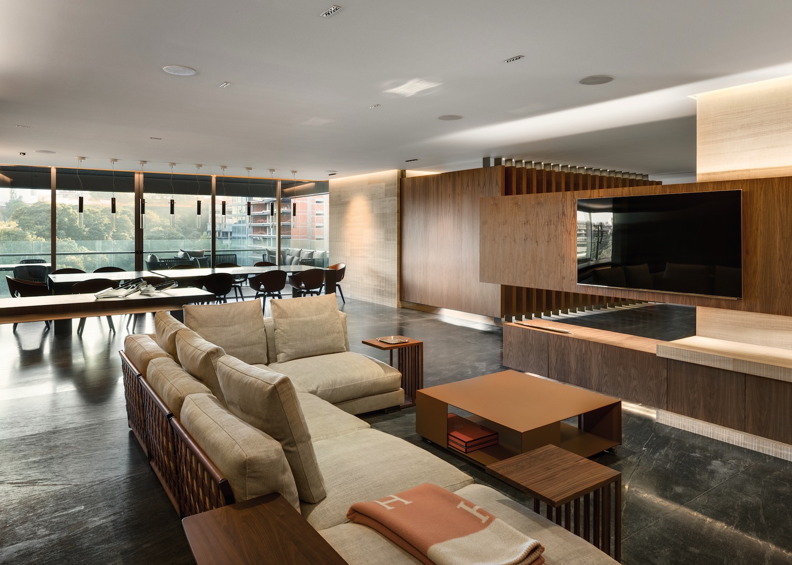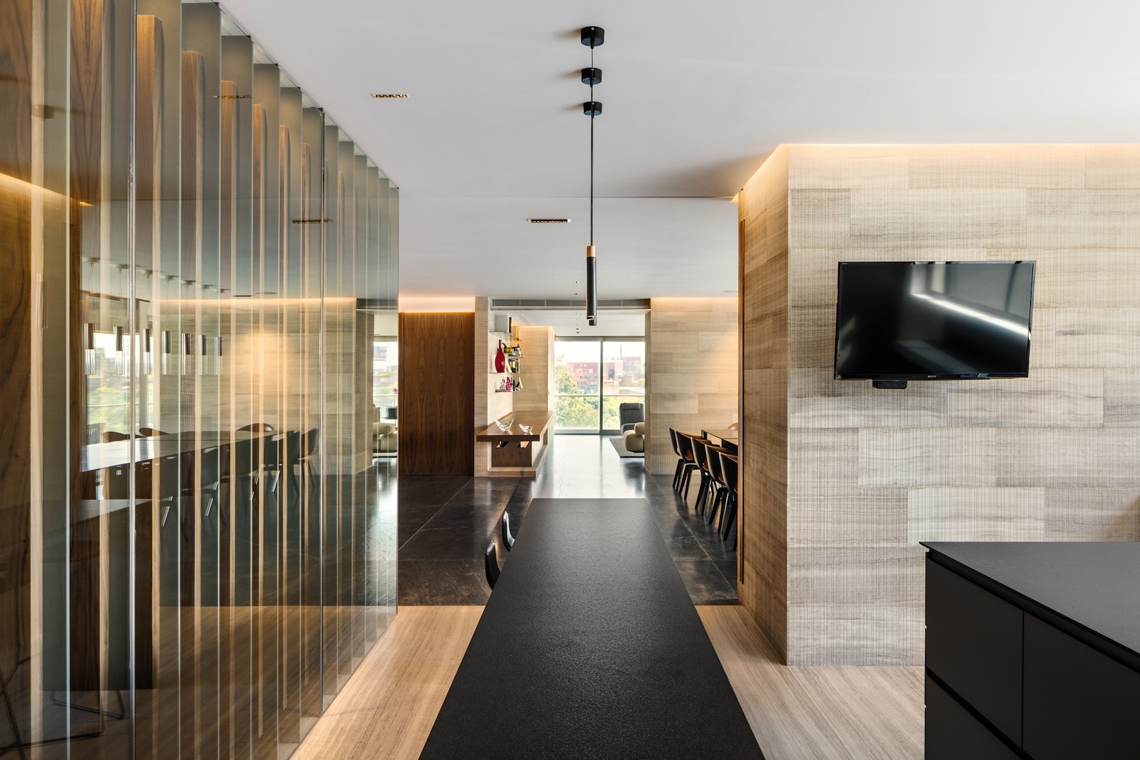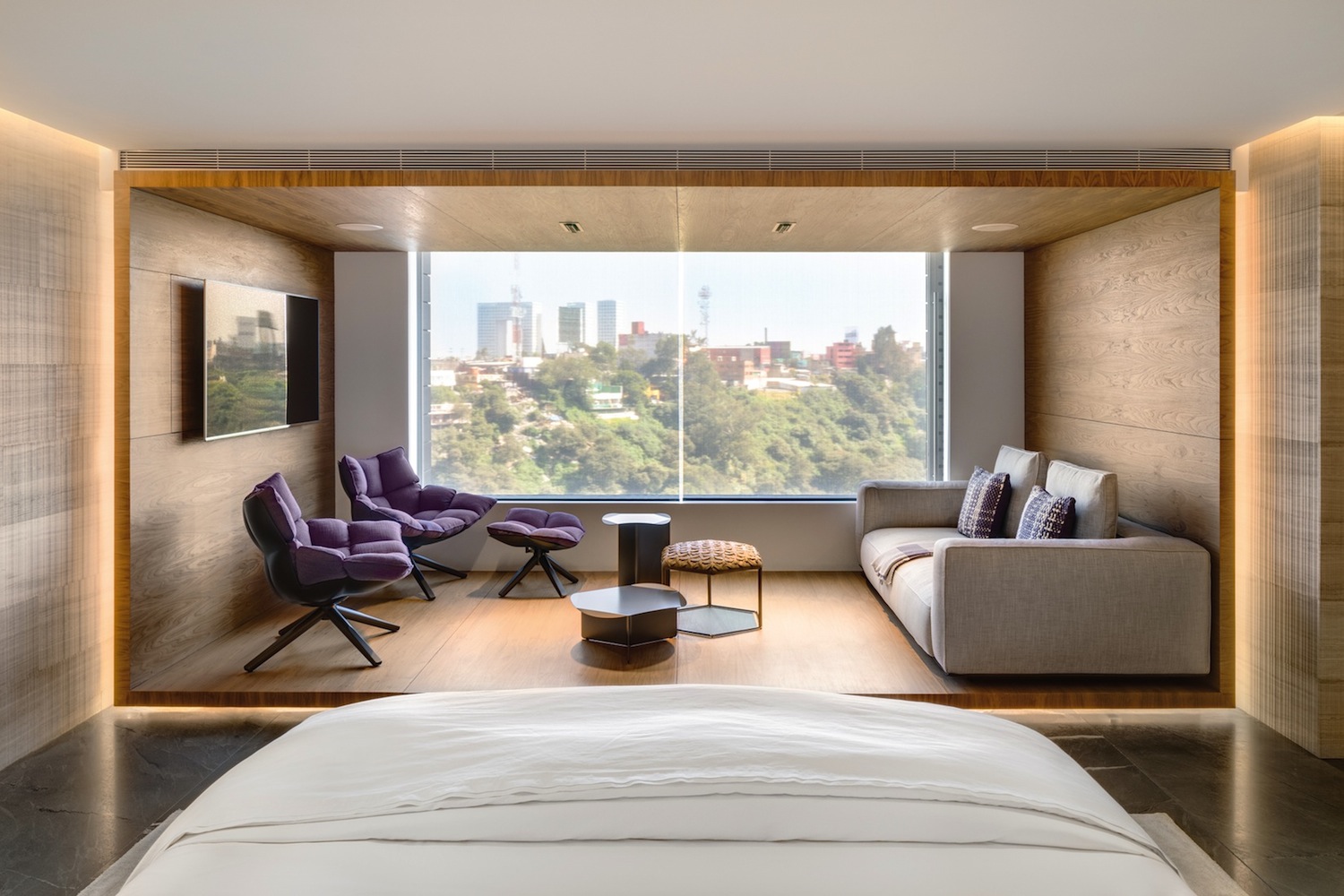 Depuis plus de trente ans, l’agence d’architecture Archetonic basée à Mexico City, et dirigée par Jacobo Micha Mizrahi et Jaime Micha Balas, multiplie les projets d’envergure – résidentiels, commerciaux, culturels, etc. – à travers le pays et au-delà de ses frontières. Pour l’appartement GVLE, étalé sur 470 m2 dominant Mexico City, les architectes ont puisé leur première inspiration dans l’environnement du bâtiment, la nature. Un cadre qui se dévoile tout au long du projet grâce à l’omniprésence de parois vitrées donnant sur une longue terrasse courant autour de l’appartement. Pour les intérieurs, place est faite à la sobriété, pour ne pas perturber la mise en valeur de cette relation constante entre le dedans et le dehors.