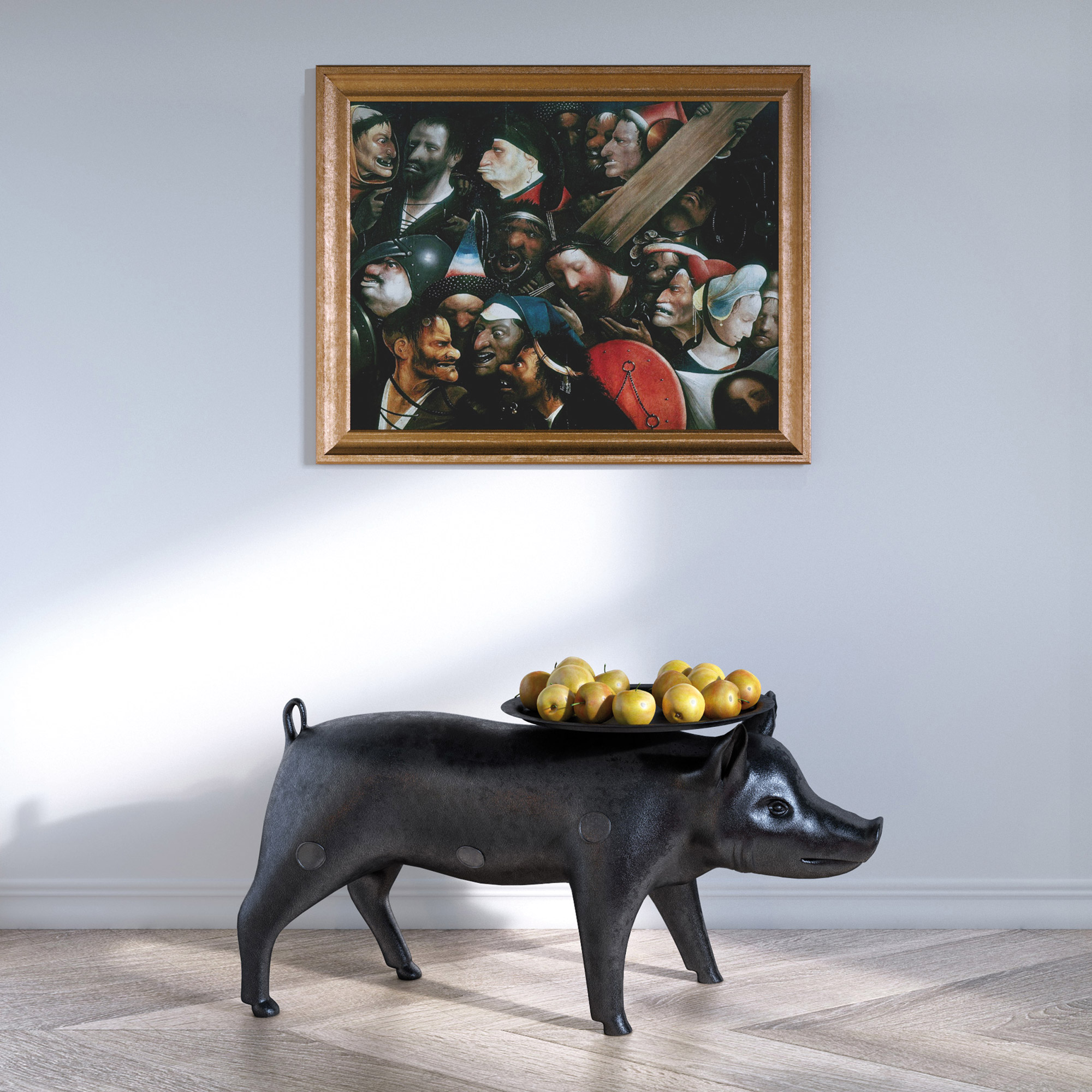 Des propriétaires qui paradent leur goût pour la peinture classique et plus particulièrement celui pour le peintre néerlandais, Jérôme Bosch.