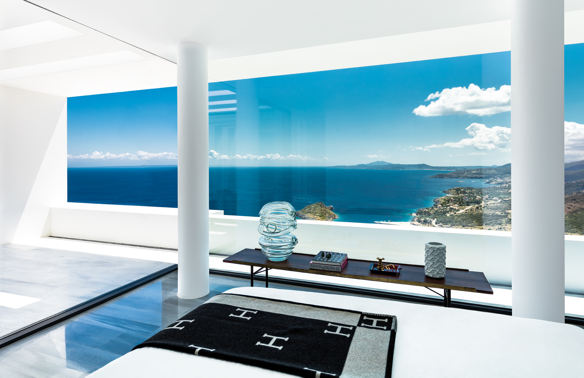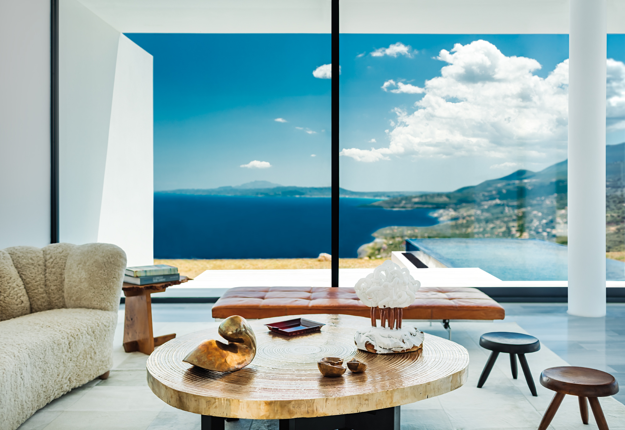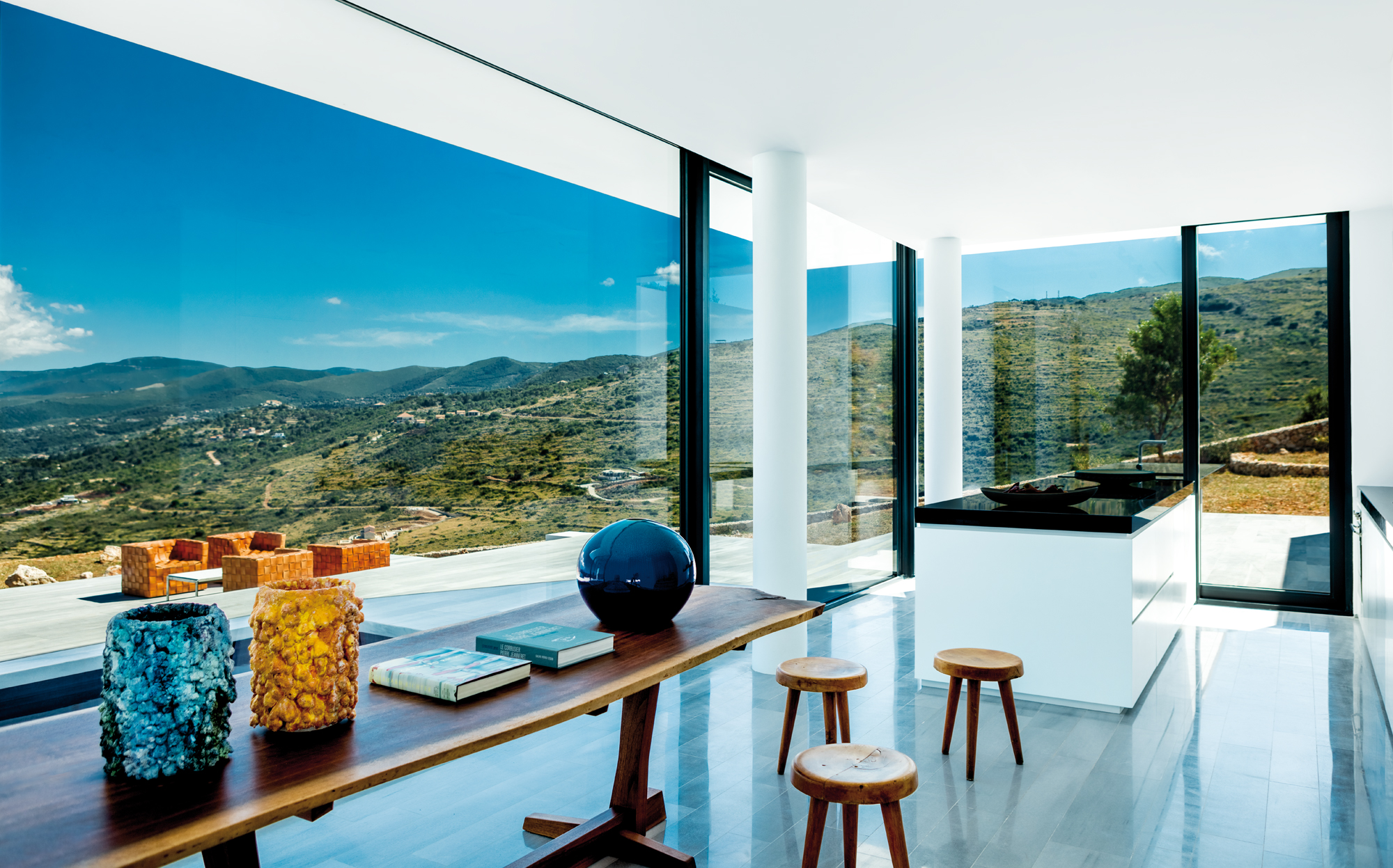 Entre mer et montagne, sur l’île de Zante, l’architecte belge Olivier Dwek a réinterprété de manière contemporaine l’architecture vernaculaire grecque pour l’Australian House, un projet hors norme entièrement cadré sur un paysage idyllique. Avec des intérieurs très sobres, animés par du mobilier iconique du XXe siècle contrastant avec des espaces immaculés.