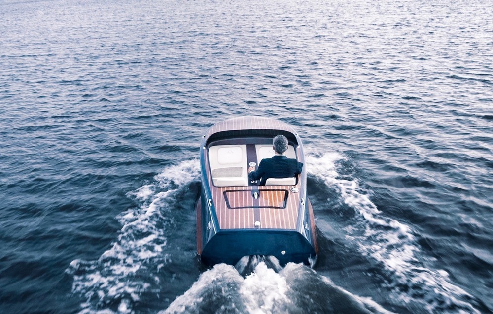 Ces bateaux électriques à vidange automatique se composent de trois composants principaux de construction; la coque, la doublure du poste de pilotage et la surface du pont, tandis qu’un timon en bois sculpté à la main de conception ergonomique avec une composante manette de jeu oriente son parcours. Les détails de luxe incluent une fraise et une manette en acajou sculptées à la main, des housses de siège en cuir épais d’un pouce qui se détachent pour un rangement facile, une glacière amovible à deux compartiments et une planche à charcuterie. Les pièces moulées en acier inoxydable poli miroir et la visserie renforcent l’air marin.