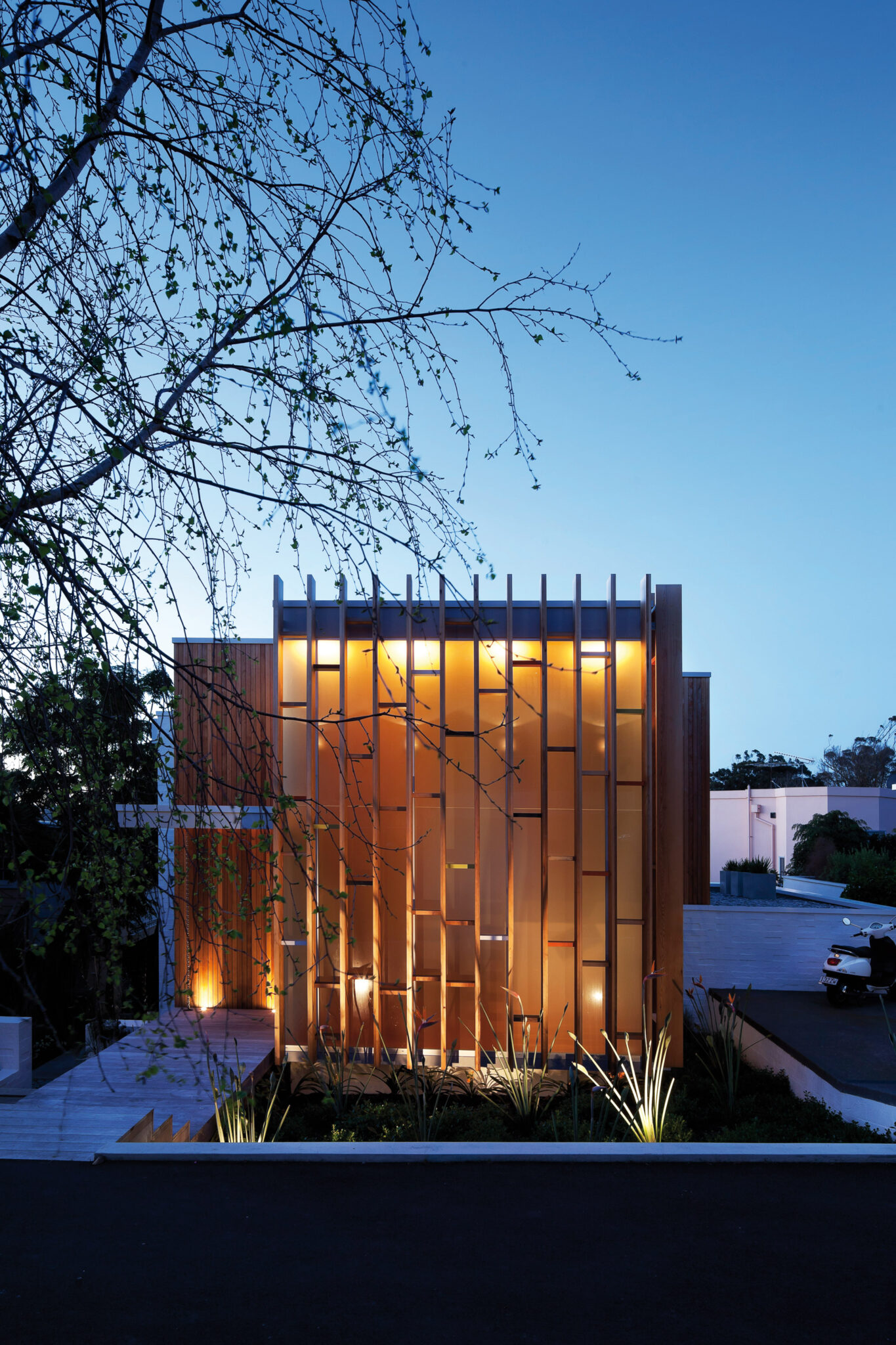 Seules la Brown Vujcich House et la Kelmarna House ne répondent pas tout à fait à ce précepte… Il faut dire que la première réalisation, à Herne Bay dans la banlieue d’Auckland, se situe en milieu urbain et se protège des regards extérieurs, notamment au niveau de l’entrée dévoilant un écran de cèdre vertical rythmé par des petites lattes horizontales. Juste derrière, une façade opaque joue les trouble-fête tout en laissant filtrer une lumière douce et naturelle pour illuminer les intérieurs décorés par les œuvres d’art et les céramiques des propriétaires, et du mobilier des années 50 et 60. Ultime proposition originale du cabinet d’architecture, la Kelmarna Chapel. Pete Bossley et ses collaborateurs ont métamorphosé une ancienne chapelle, sauvée de justesse avant sa démolition programmée, en un appartement avec trois chambres. Les créateurs ont profité des proportions uniques du bâtiment pour installer les espaces de vie, donnant sur une cour fermée, au cœur du volume voûté à double hauteur traversé par une passerelle suspendue en bois. Un projet contemporain étonnant aux proportions harmonieuses. L’une des autres caractéristiques de l’agence !