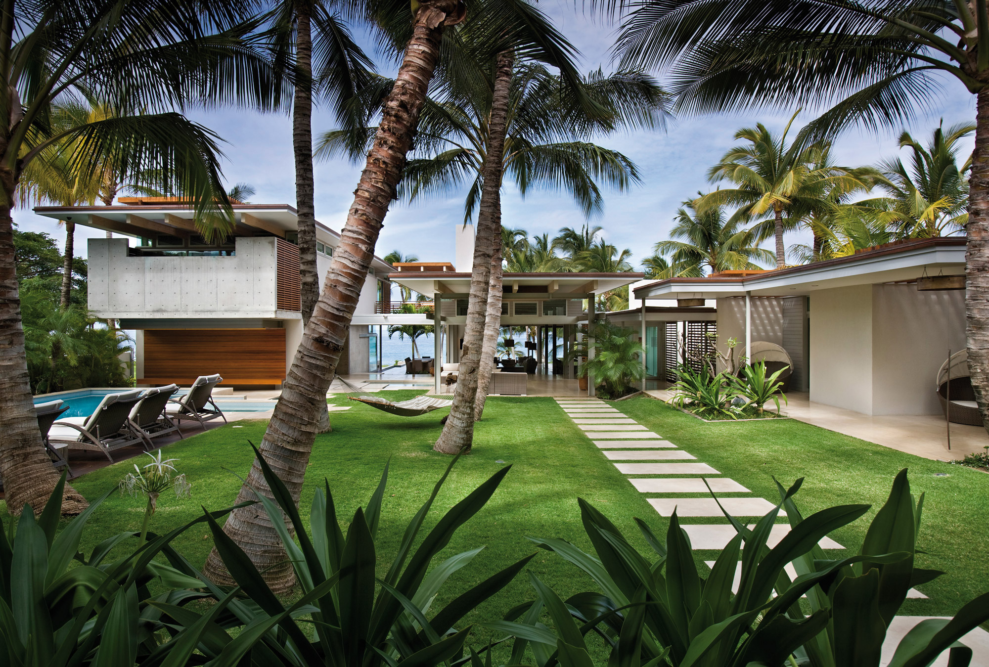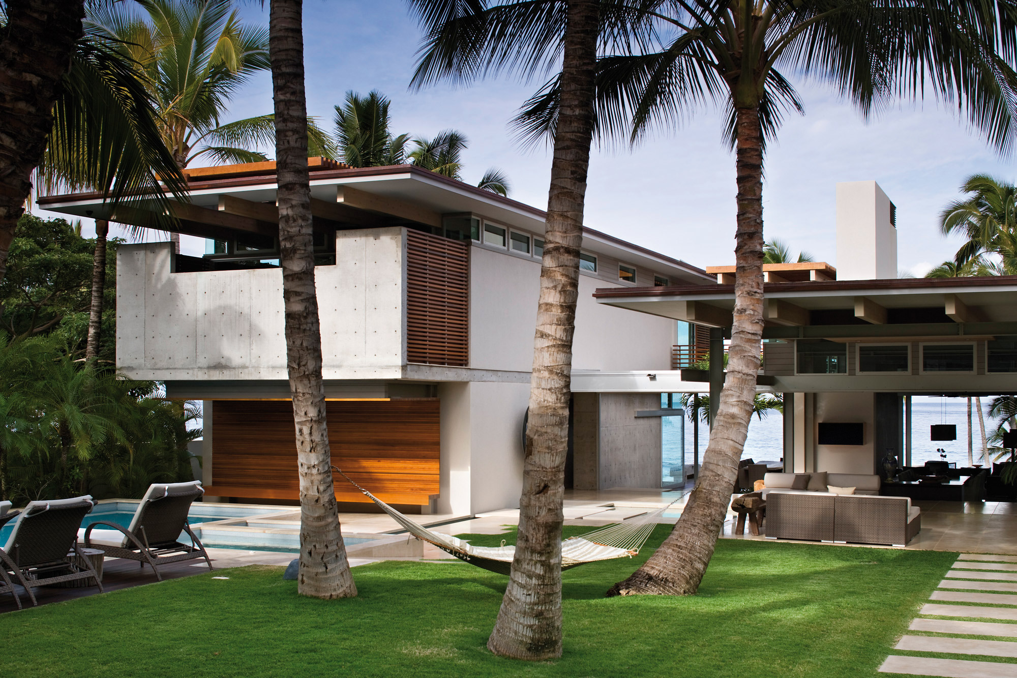 Parfaite illustration de la construction durable qu’affectionne Pete Bossley, la Nanea House propose une nouvelle façon de vivre dans un climat tropical hawaïen : « Alors que la plupart des maisons sur l’île de Maui ressemblent à des boîtes scellées et climatisées, cette résidence est ventilée naturellement. Nous avons tiré parti de la brise de la mer pour refroidir les espaces intérieurs et extérieurs. L’eau qui coule participe aussi à ce microclimat, tout comme les débords du toit protégeant des rayons du soleil. » Face à la plage et la mer, la Fold House, formée par trois bâtiments, évoque un campement chic. Et dénote avec ses toits semblant pliés et composés de facettes triangulaires… À l’image des autres projets de l’agence, la maison presque transparente est littéralement inondée de lumière naturelle.