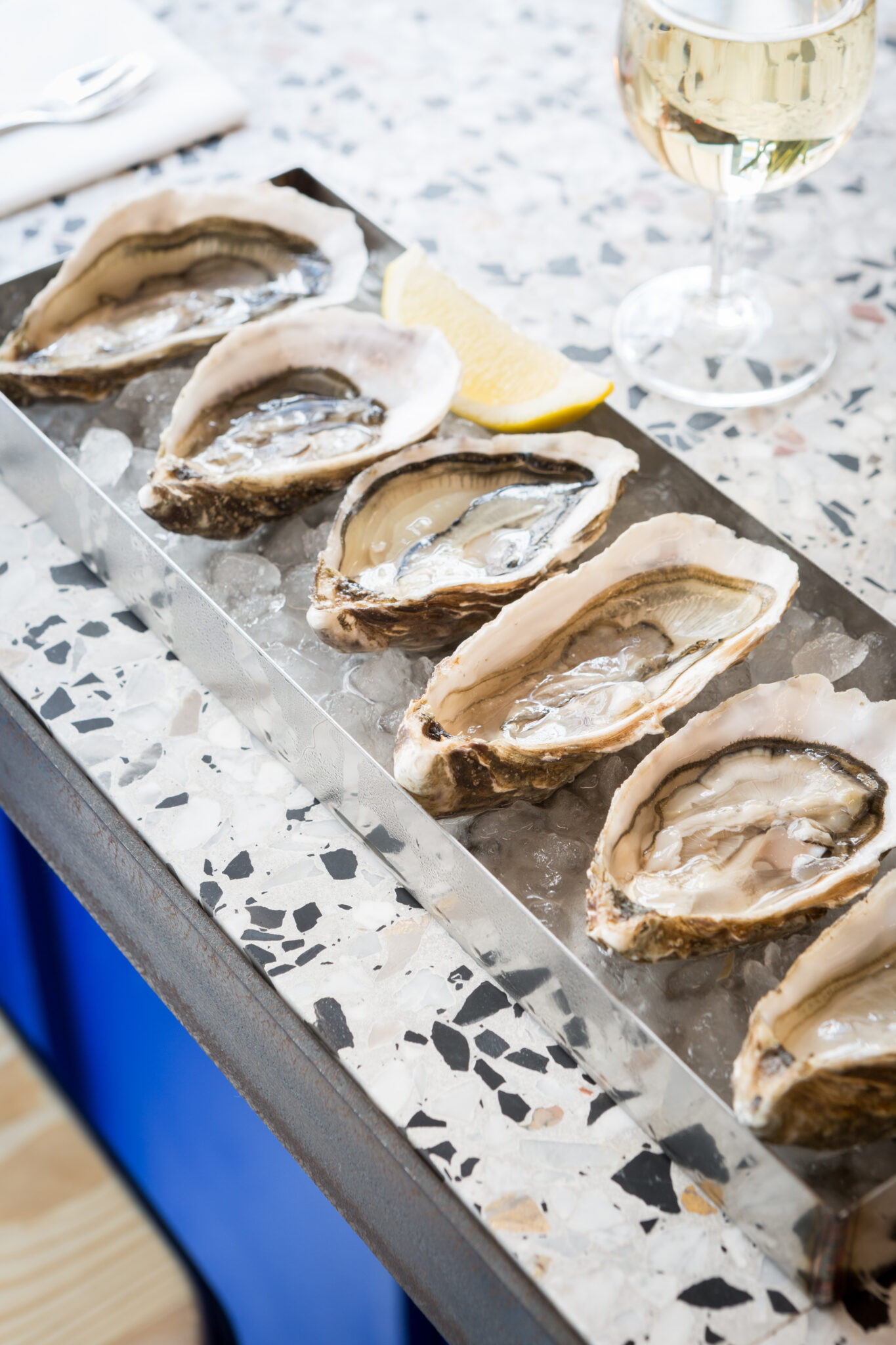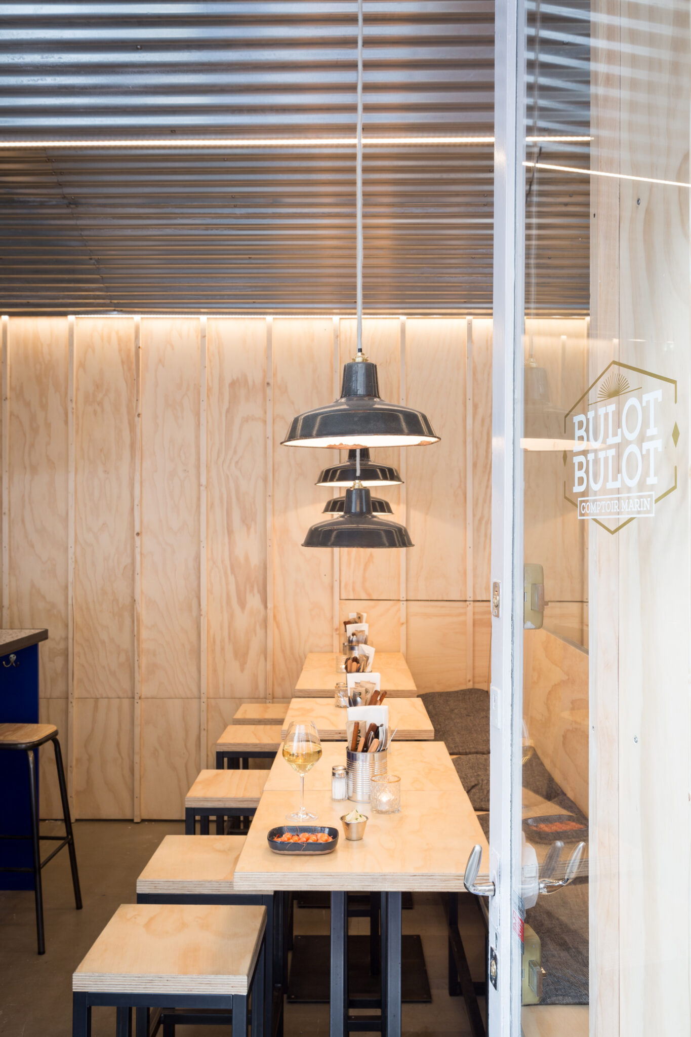 Situé à deux pas du très vivant quartier des Abbesses à Paris, le design de Bulot Bulot, dans l’esprit d’une cabane de pêcheur, est imaginé par le célèbre studio Forall, qui a notamment signé le flagship store du parfumeur Francis Kurkdjian.