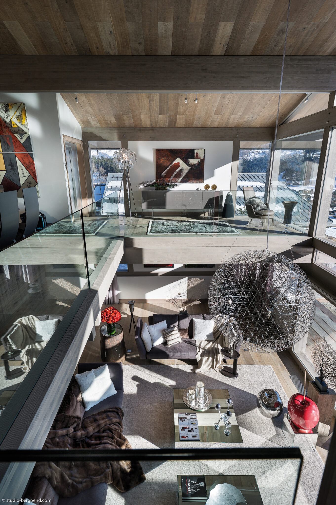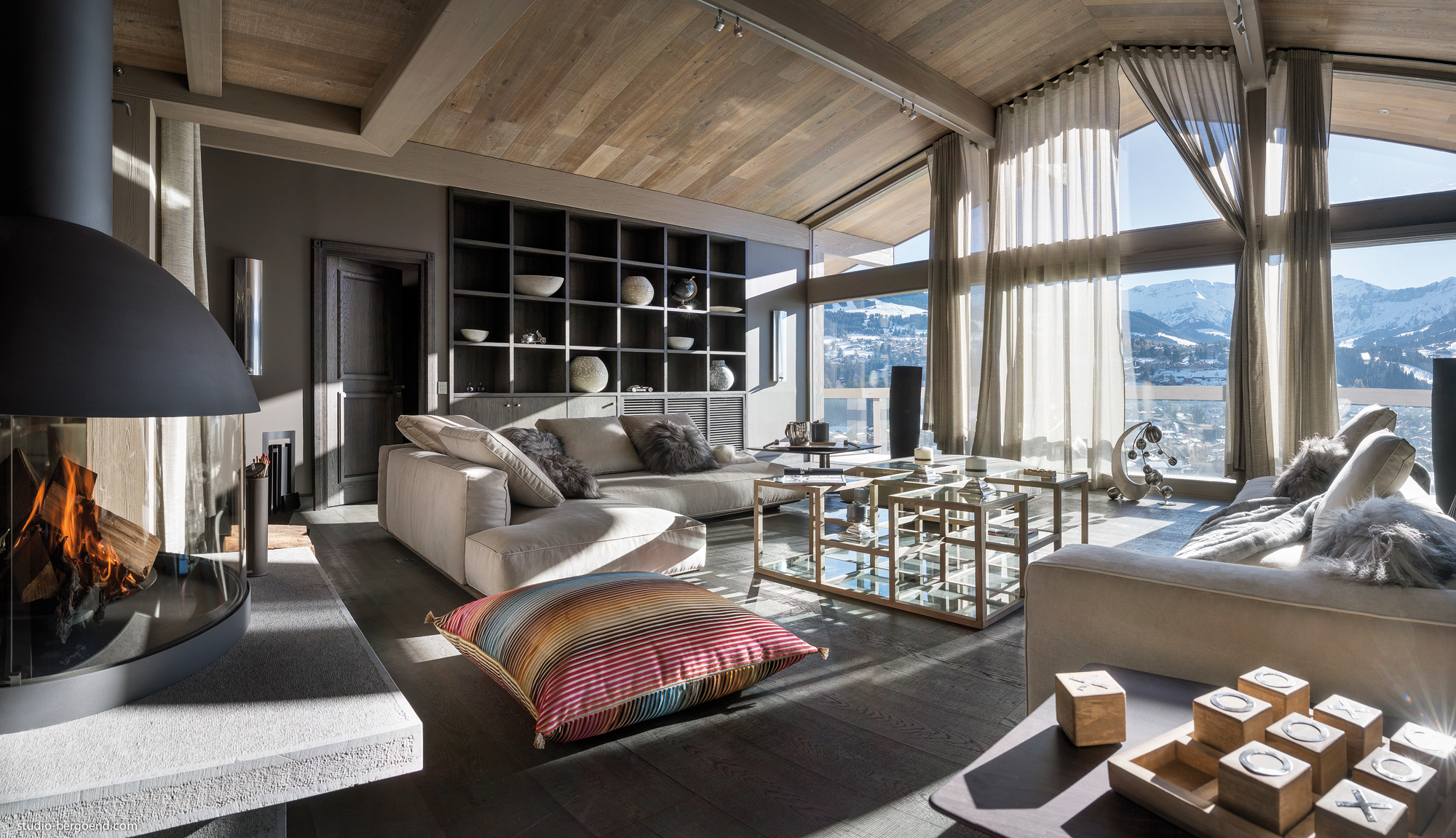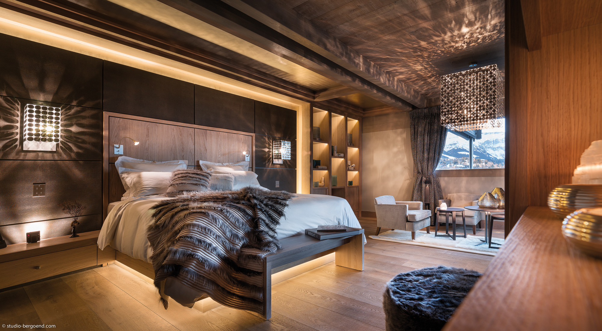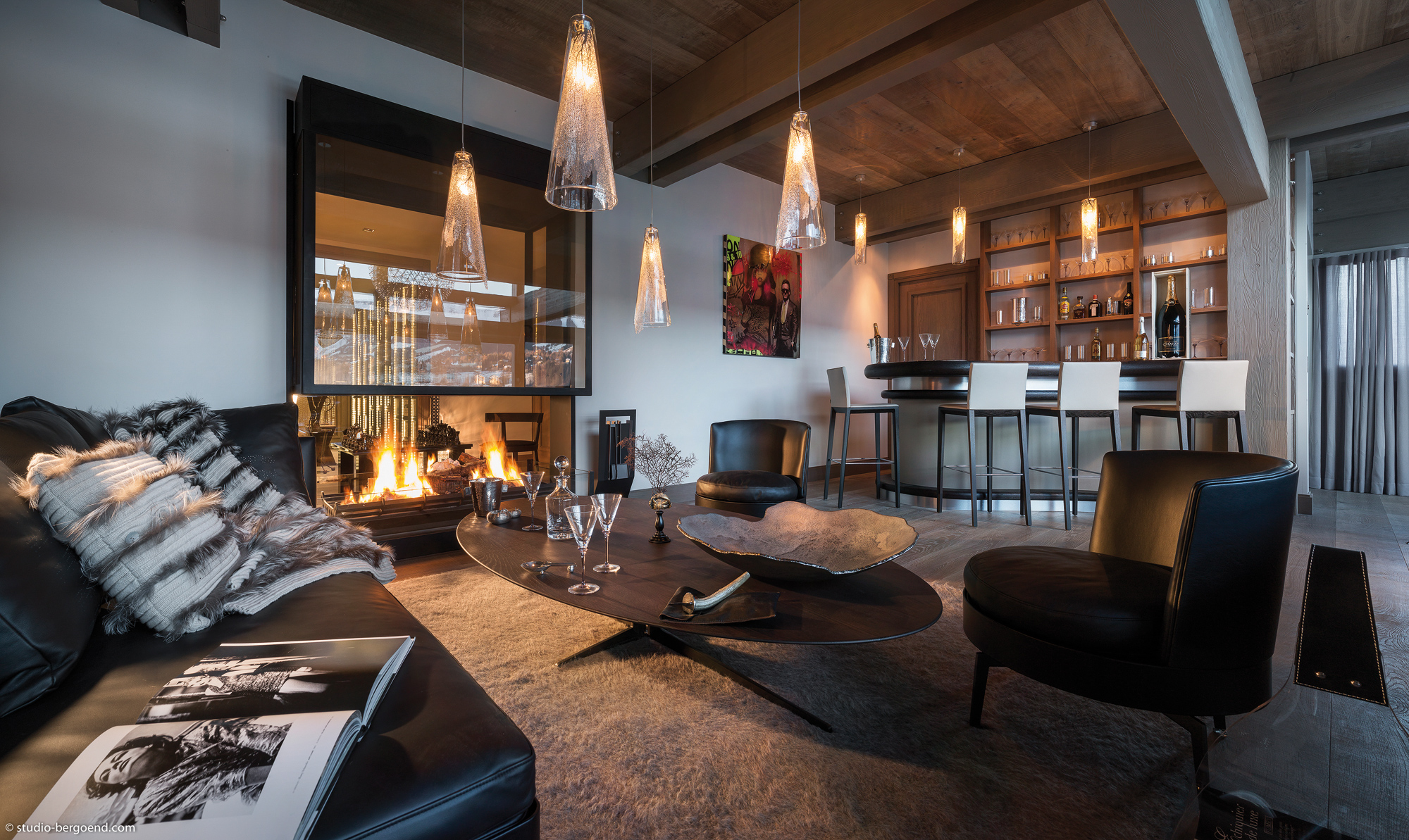Peuplés de matériaux luxueux, d’oeuvres d’art contemporain et meublés avec des pièces signature, dont des collections de l’éditeur italien Flexform, les chalets dévoilent des intérieurs d’un raffinement rare… Le master chalet, d’une capacité de 12 personnes, abrite 4 suites, dont deux masters, un vaste séjour, une salle à manger, une cuisine professionnelle, des salons et même une boutique à vins.