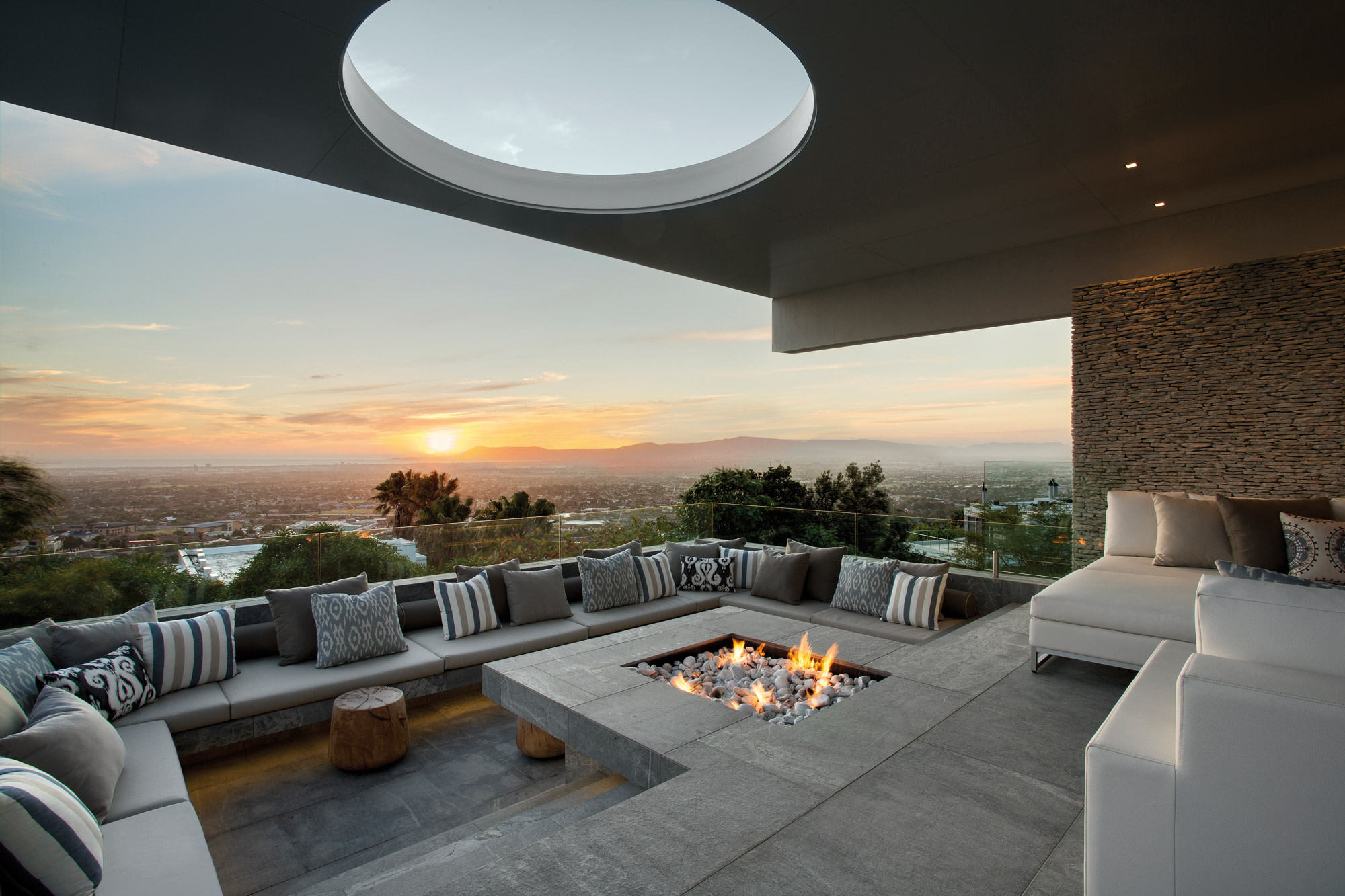 Reflets d’un lieu et des désirs de ses clients, les projets du studio d’architecture intérieure ARRCC brillent par leur singularité et leur harmonie. L’agence sud-africaine montre des conceptions raffinées, axées sur les détails, les matériaux et les textures. Leur dernier projet, la City Villa en Afrique du Sud, dessinée par Mark Reilly et Brian Bernhardt, s’inscrit parfaitement dans cette lignée. De l’extérieur, la demeure placée sur un site escarpé a fière allure… Elle se compose de formes rectangulaires résolument modernes qui se superposent de manière perpendiculaire, avec des éléments de béton en porte-à-faux accentuant sa majesté. L’émerveillement se poursuit dès l’approche de la maison.
