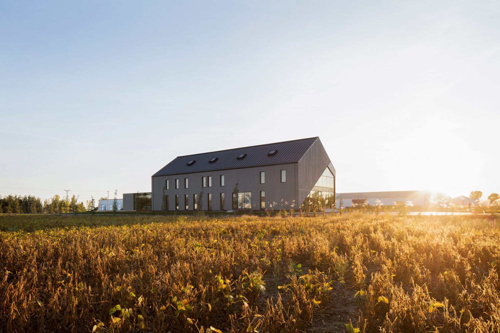 Il s’agit de l’entreprise canadienne Maurice Martel Architecte qui a conçu cette grange en bois contemporaine qui abrite les bureaux d’une compagnie d’assurance, se fondant dans le milieu rural et l’architecture vernaculaire.