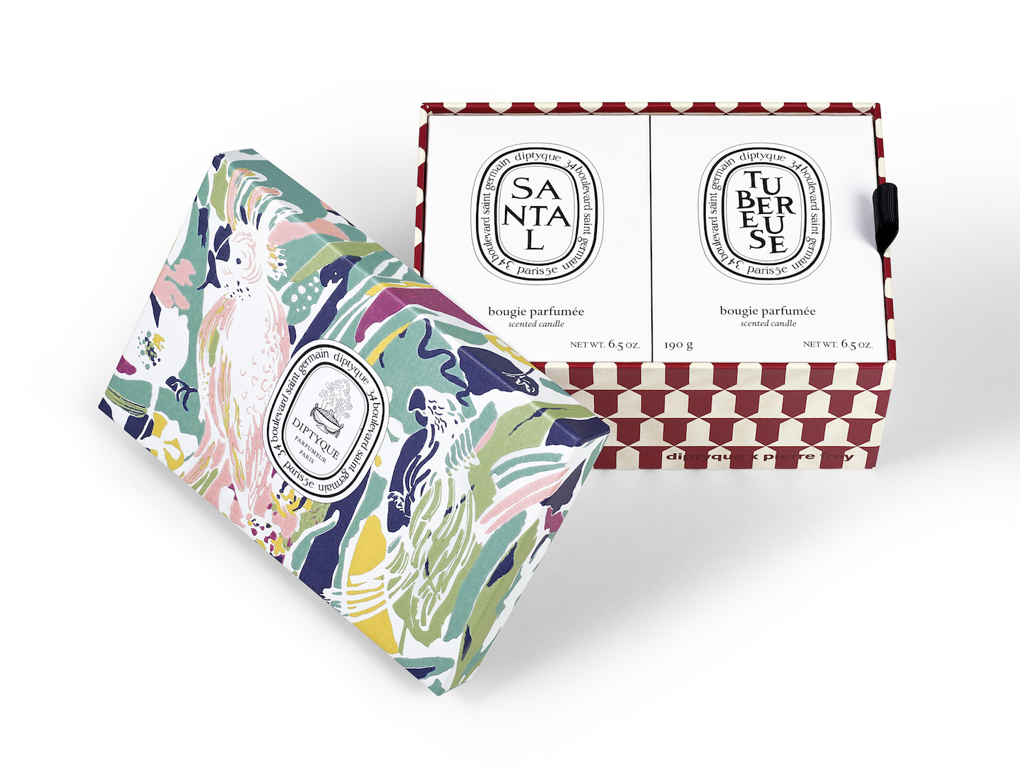 Pour s’initier aux duos de senteurs et au jeu de leur association, diptyque créé 5 coffrets en édition limitée décorés par les créations de la maison Pierre Frey.