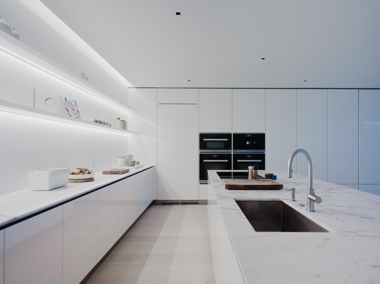 Là encore, les architectes préférant laisser l’espace courir fluidement, plutôt que de l’obstruer par des séquences chromatiques différenciantes, qui pourraient même le segmenter. Non, pour Edmonds et Lee, c’est dans la continuité que l’espace doit pouvoir « sur-vivre ». Un pré-requis qui conditionne ce tout-en-un qu’ils affectionnent et prêchent comme un credo d’église. Et c’est derrière ce mantra que se cache d’ailleurs, peut-être, l’ADN de l’agence Edmonds et Lee. Un ADN spirituel pour une architecture loin de sa matérialité mais proche des sens. Une architecture pour s’élever et vivre dans une quiétude spatio-temporelle atmosphérique.