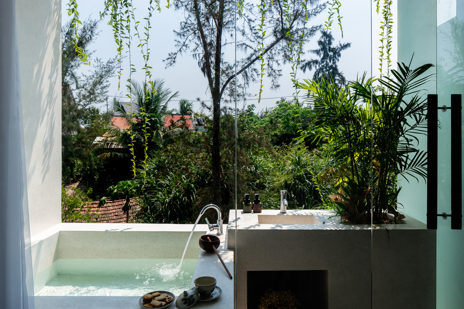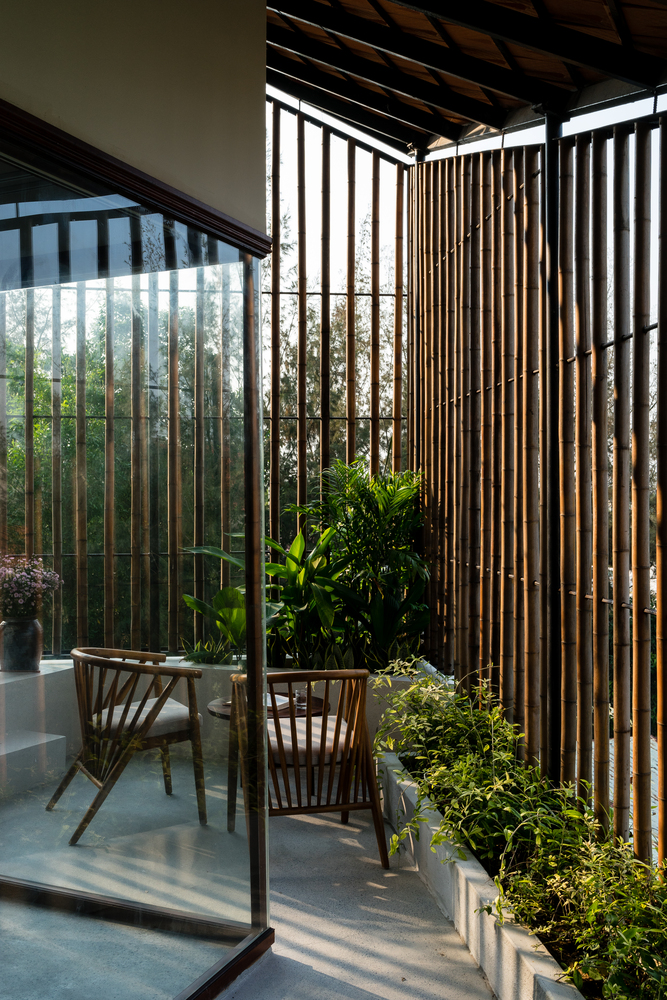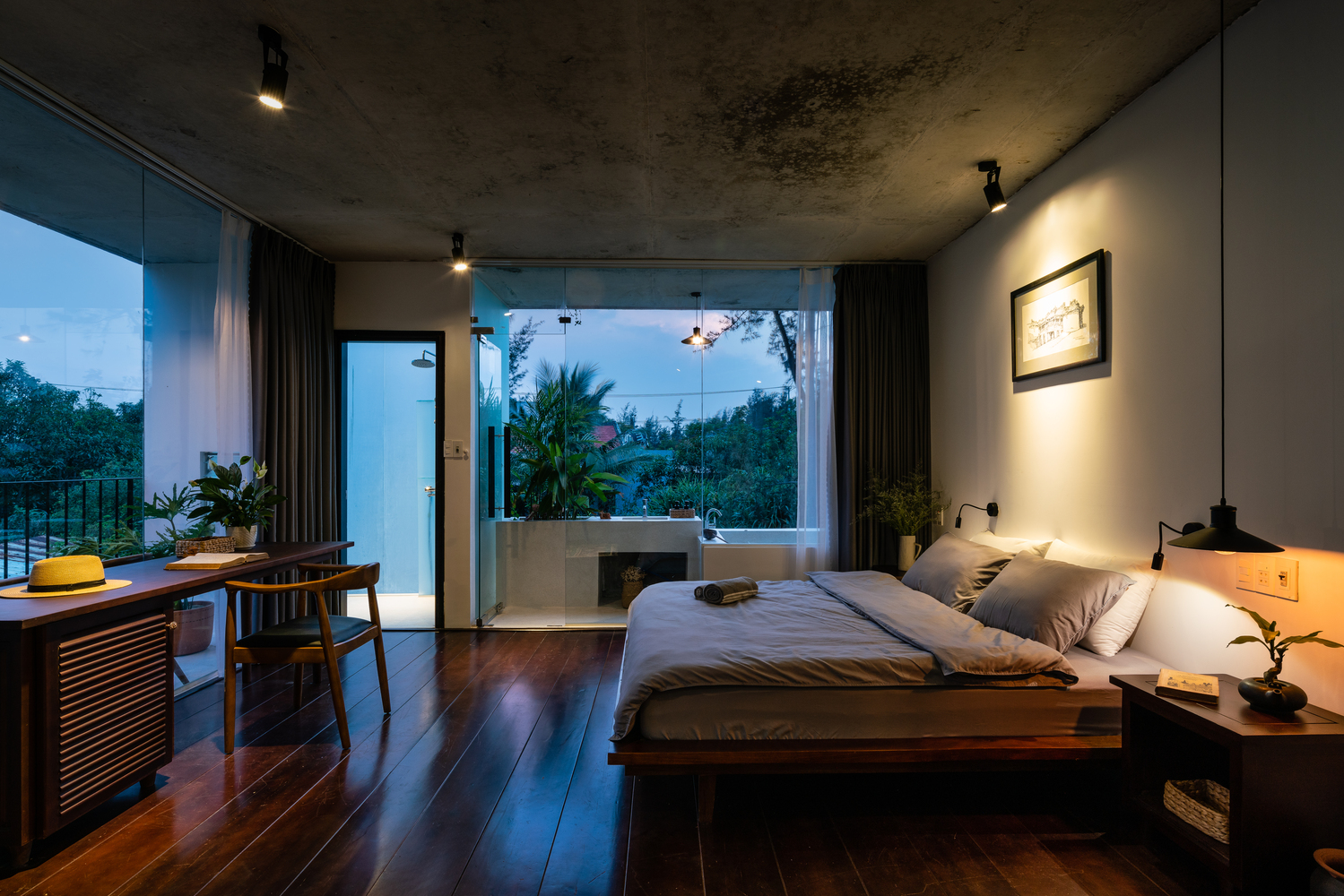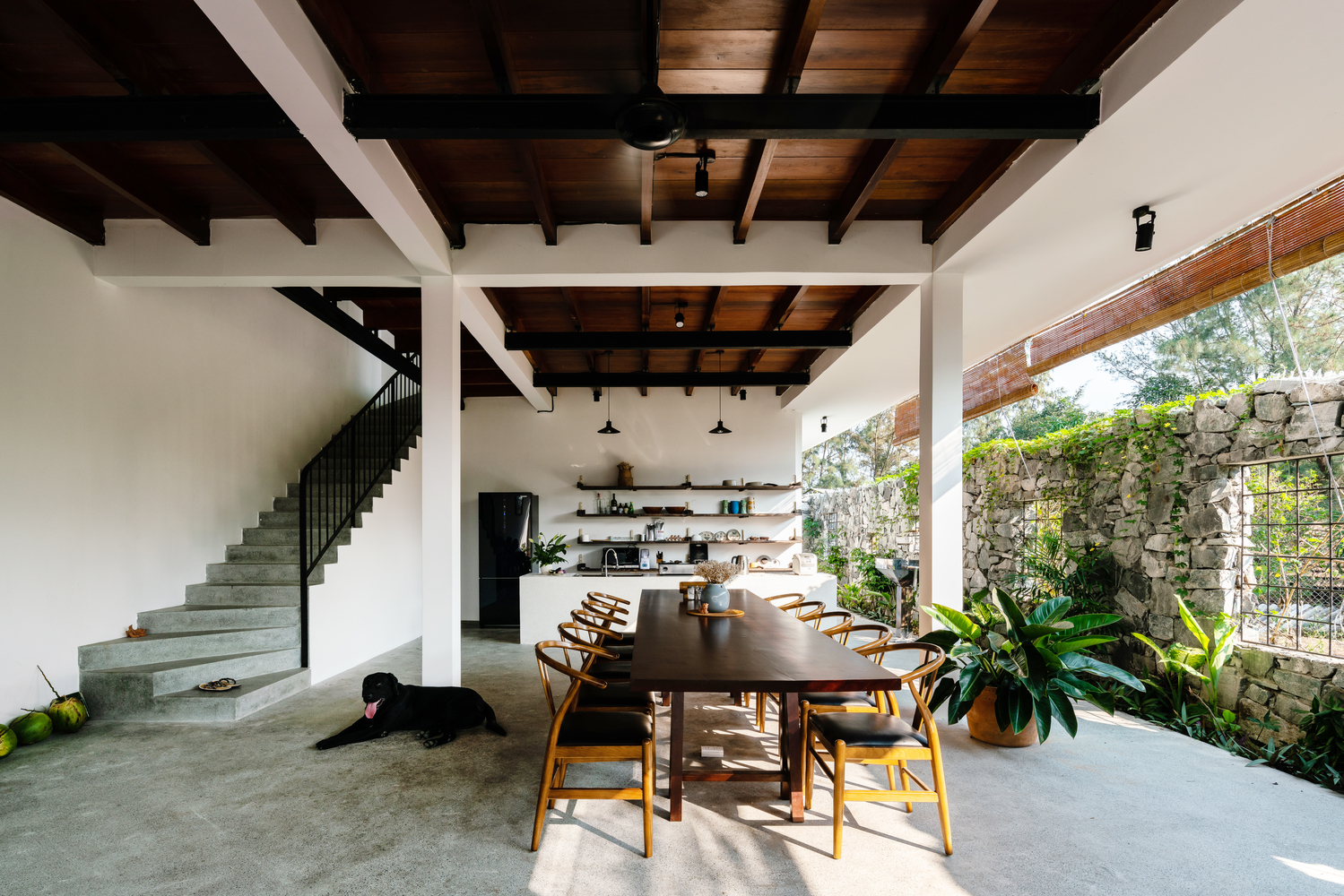 Afin de créer un climat durable, une belle esthétique reflétant la nature du paysage balnéaire, ils utilisent une combinaison de bois et de roche comme matériaux majeurs. En outre, en raison de contraintes budgétaires serrées, les architectes exploitent au maximum la beauté brute des matériaux naturels et n’installent que les murs de verre où il est absolument nécessaire. Des matériaux traditionnels et locaux sont également utilisés efficacement dans ce travail, tels que la pierre, le bois naturel, la meule, le bain abrasif, le mur de bambou, etc., permettant une infusion significative de l’âme dans le projet.
