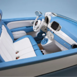 En plus de contenir tous les éléments essentiels pour un voyage au bord de la mer, ce compartiment abrite également une douche intégrée pour laver le sable à la fin d’une journée de bronzage. À l’intérieur, qui correspond aux couleurs et au style de l’extérieur, le siège avant de la voiture de plage a été remplacé par un banc sur mesure , typique des années 1960.