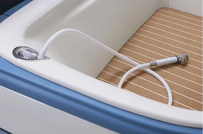 En plus de contenir tous les éléments essentiels pour un voyage au bord de la mer, ce compartiment abrite également une douche intégrée pour laver le sable à la fin d’une journée de bronzage. À l’intérieur, qui correspond aux couleurs et au style de l’extérieur, le siège avant de la voiture de plage a été remplacé par un banc sur mesure , typique des années 1960.