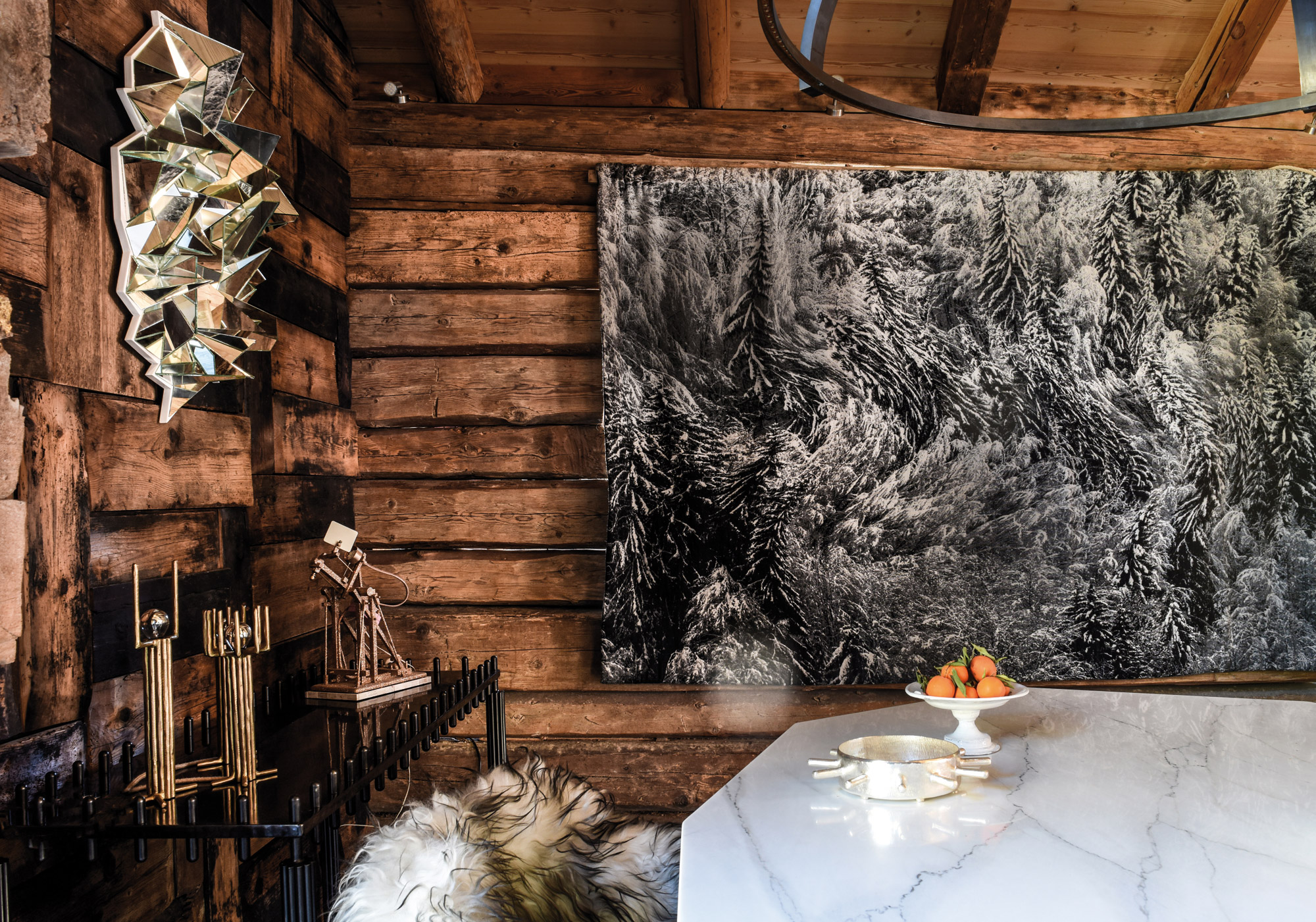 Le photographe Gilles Pernet a fait de sa passion un métier. Mais sa production artistique s’étend au-delà de cette discipline. Il aborde ce médium comme un peintre, sa palette étant l’outil numérique. Support de création, la photographie dialogue parfois avec d’autres matériaux plus inattendus, dont la tapisserie tissée sur métier Jacquard à Aubusson-Felletin. Une expression originale de son art utilisée pour son œuvre White Disorder, déformant les paysages de neige. Thème récurrent, la neige est aussi très présente dans sa dernière série de photographies Snow, inspirée par son environnement. Installé depuis quelques années près de Megève dans une ferme du XVIIIe siècle face au Mont-Blanc, Gilles Pernet contemple depuis son balcon les différentes vues sur cette nature préservée qu’il voit changer au fil des saisons… « J’ai longtemps laissé les paysages en paix en me contentant de les arpenter, raconte Gilles Pernet. J’aime marcher les mains libres, sans appareil. Et puis, de cette nouvelle proximité, de cette confrontation quotidienne qui s’imposait à moi, est née la nécessité de les transcrire. J’ai donc commencé à photographier systématiquement, obsessionnellement, ce que j’avais en face de moi, laissant même un pied photo sur place, en permanence. J’ai vu rougir les cimes des arbres, l’automne venu, et les premières neiges s’y déposer, J’ai vu des jours de tempête en hiver et la neige battue par le vent au cœur de jours sombres, j’ai vu des petits matins glacés porteurs de l’espoir d’un soleil tardif. J’aurais pu me contenter de présenter ça, joliment et classiquement, mais quid du sentiment des jours sombres, de l’espoir d’un soleil naissant et de la rougeur des cimes ? Les mises en couleurs graphiques que j’opère sont là pour ça, c’est ma trace, ma poétique, mon discours. » Une nouvelle série qui témoigne de son affinité pour la montagne enneigée, mais aussi de son extrême sensibilité.