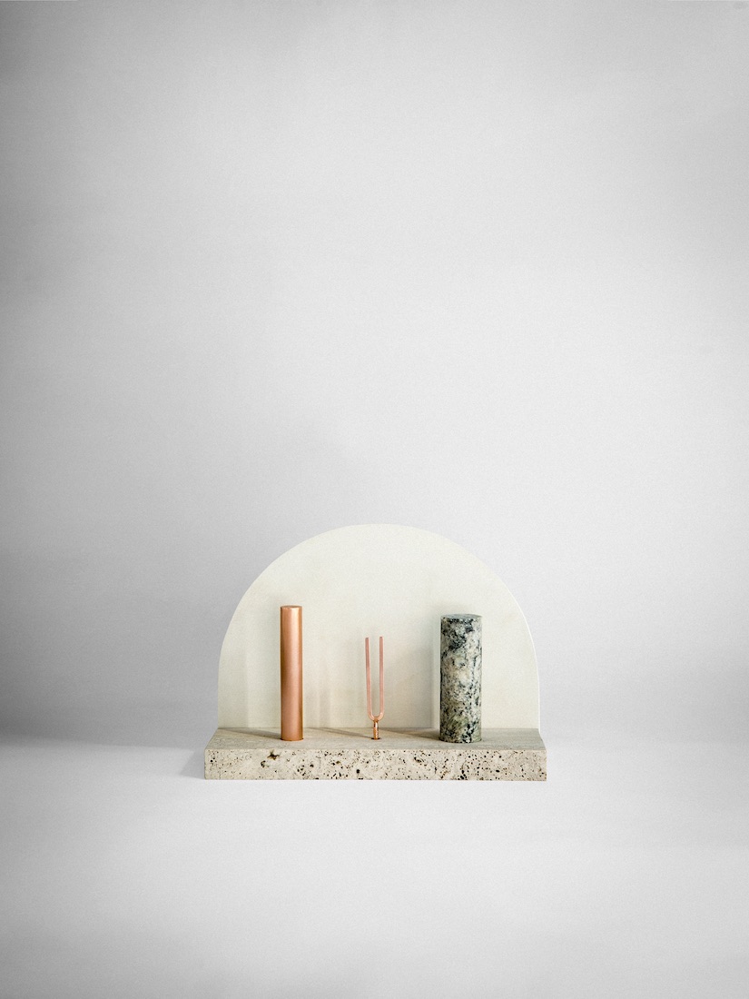 La collection a été dévoilée pour la première fois lors de la Milan Design Week et comprend des pièces uniques dont l’origine est une étude du matériau: aussi fragile que la craie et aussi dur que le marbre. L’union et la contradiction de deux éléments différents mais complémentaires. Matériaux qui mènent à l’exploration de la relation entre la redécouverte et l’objet. Ce sont les formes retrouvées, des extraits prêts à l’emploi, découverts parmi une masse de déchets où la forme n’est pas encore alphabétisée.