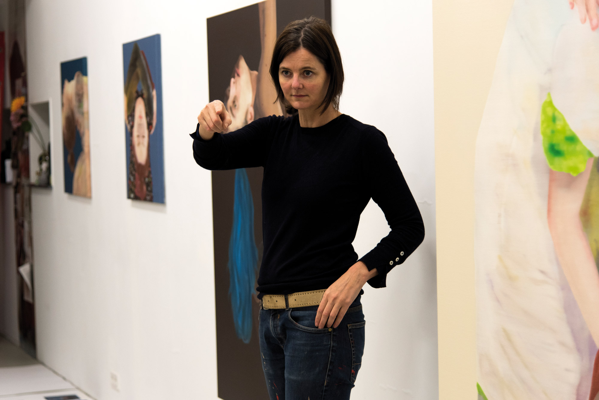 Dans un quartier du sud de Rotterdam, une maison de deux étages, contemporaine, aux grandes ouvertures, contre la façade de laquelle sont appuyés deux vélos. Une grande femme, à l’allure sobre, à peine rehaussée d’un rouge aux lèvres et de baskets écarlates, nous accueille, dans le calme et la sérénité de son lumineux atelier, peuplé de portraits à la fois palpables et irréels.