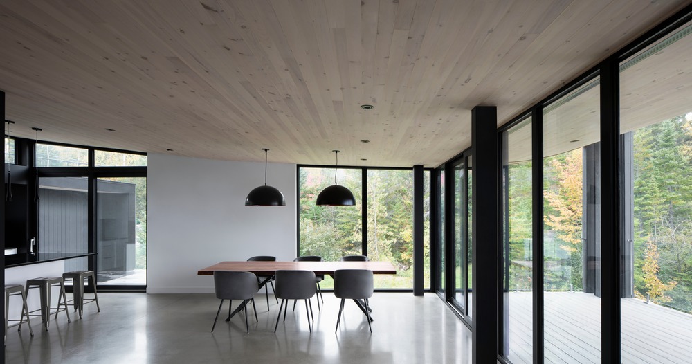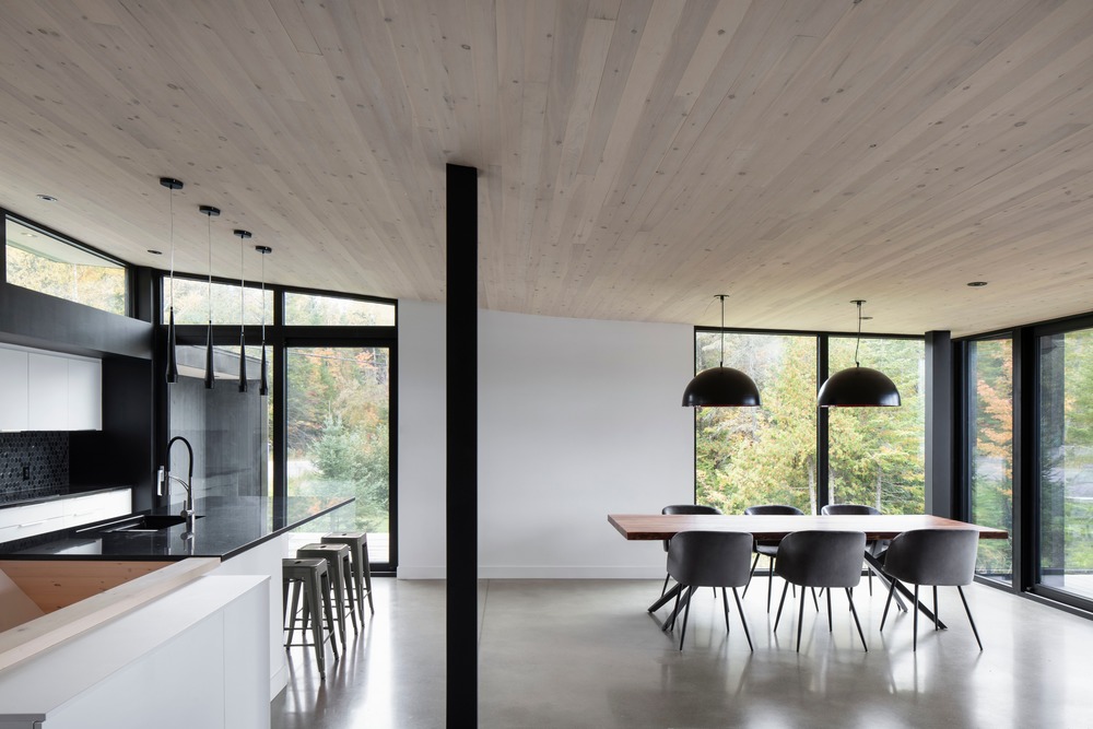 La Barque est le refuge paisible d’une famille hyperactive. Située sur les rives du lac Ouareau à Saint-Donat, la maison a été inspirée par l’amour des propriétaires pour les paysages nordiques. Sous le plafond incurvé de la maison, qui rappelle une coque de bateau, son atmosphère intérieure sereine capte le calme des collines environnantes et offre à la famille un endroit pour reprendre son souffle entre deux pistes de ski ou deux pistes de ski nautique.