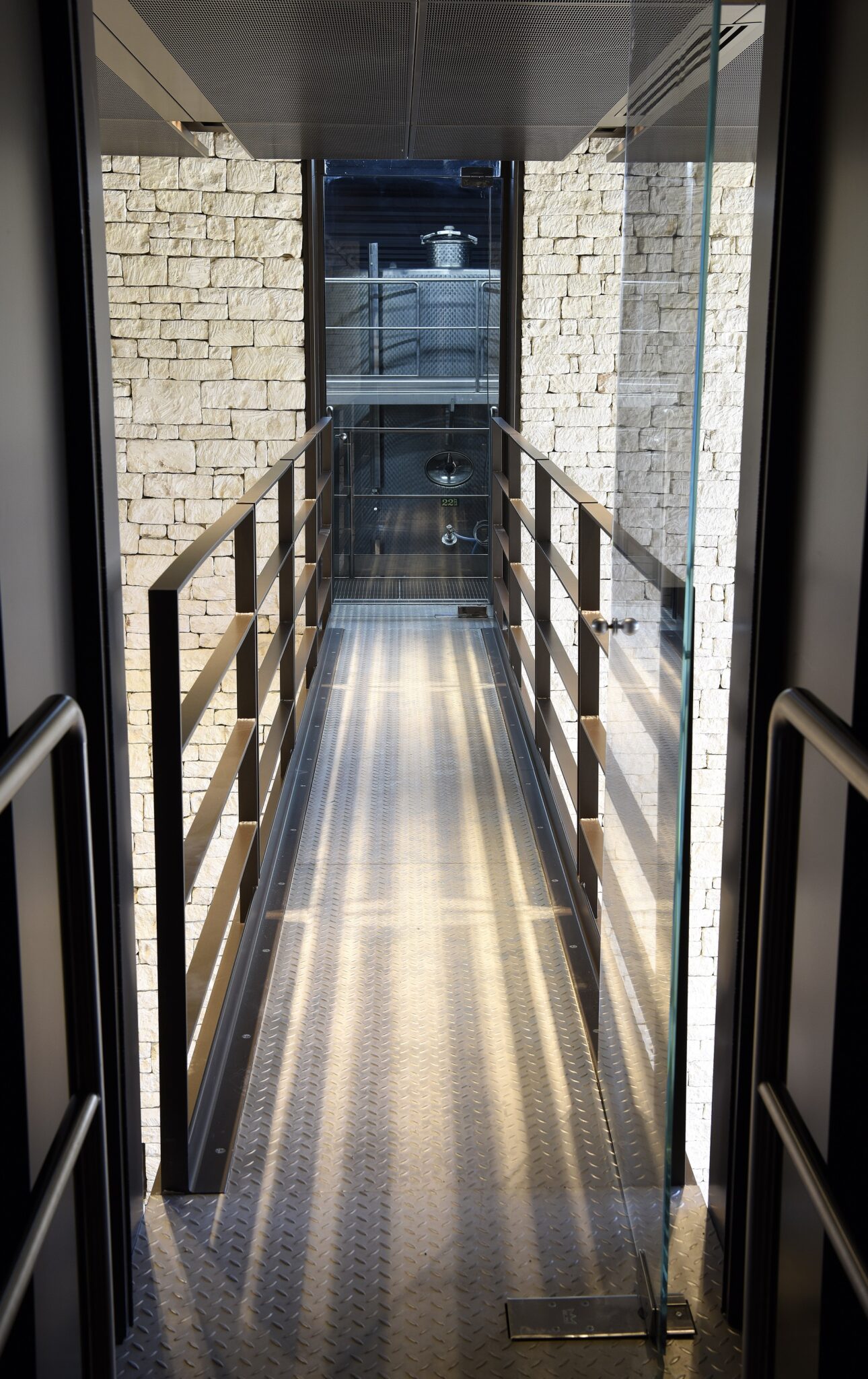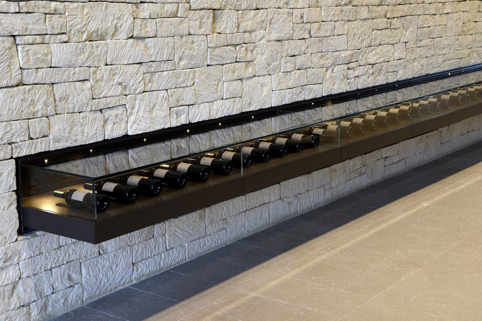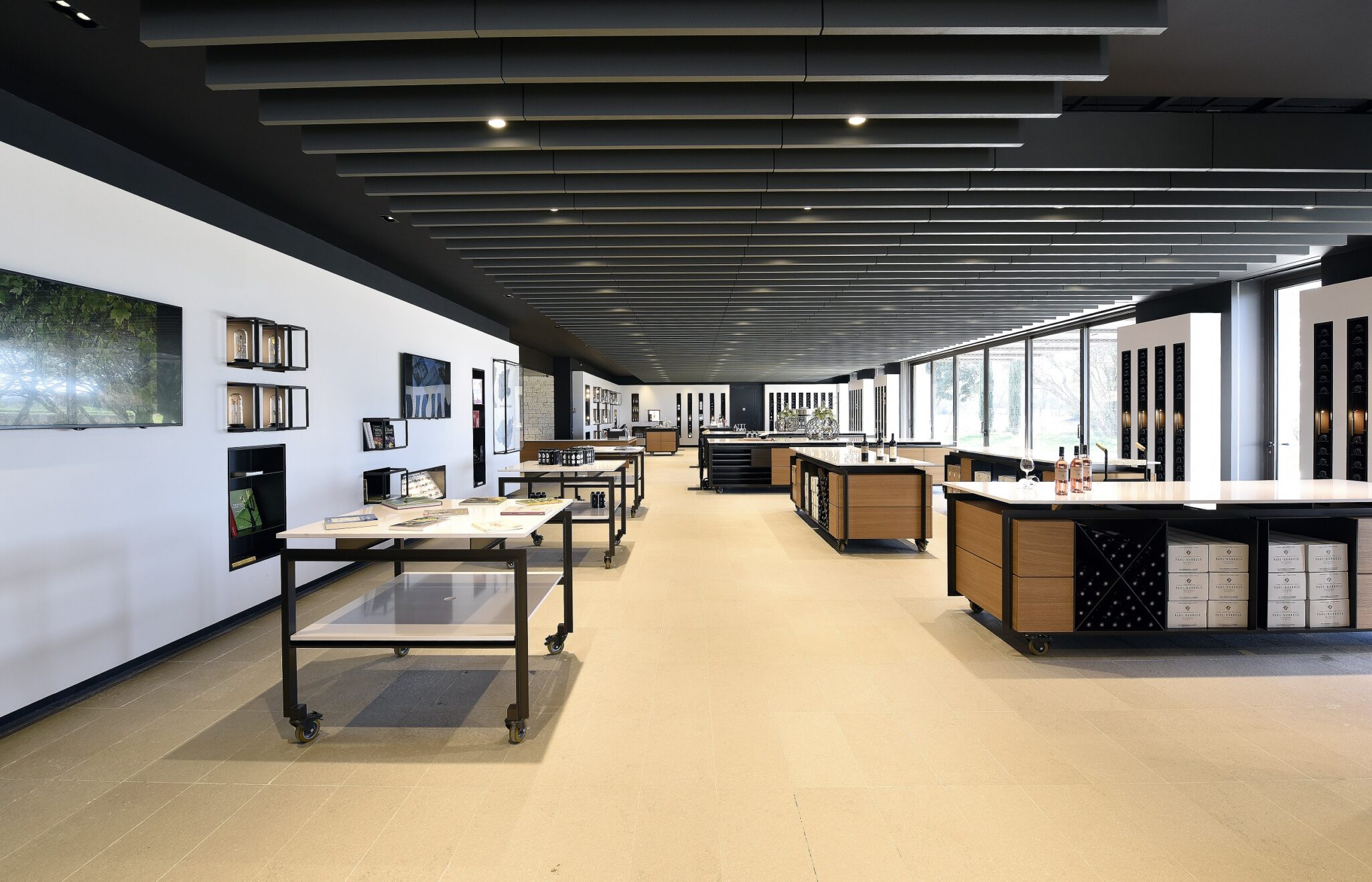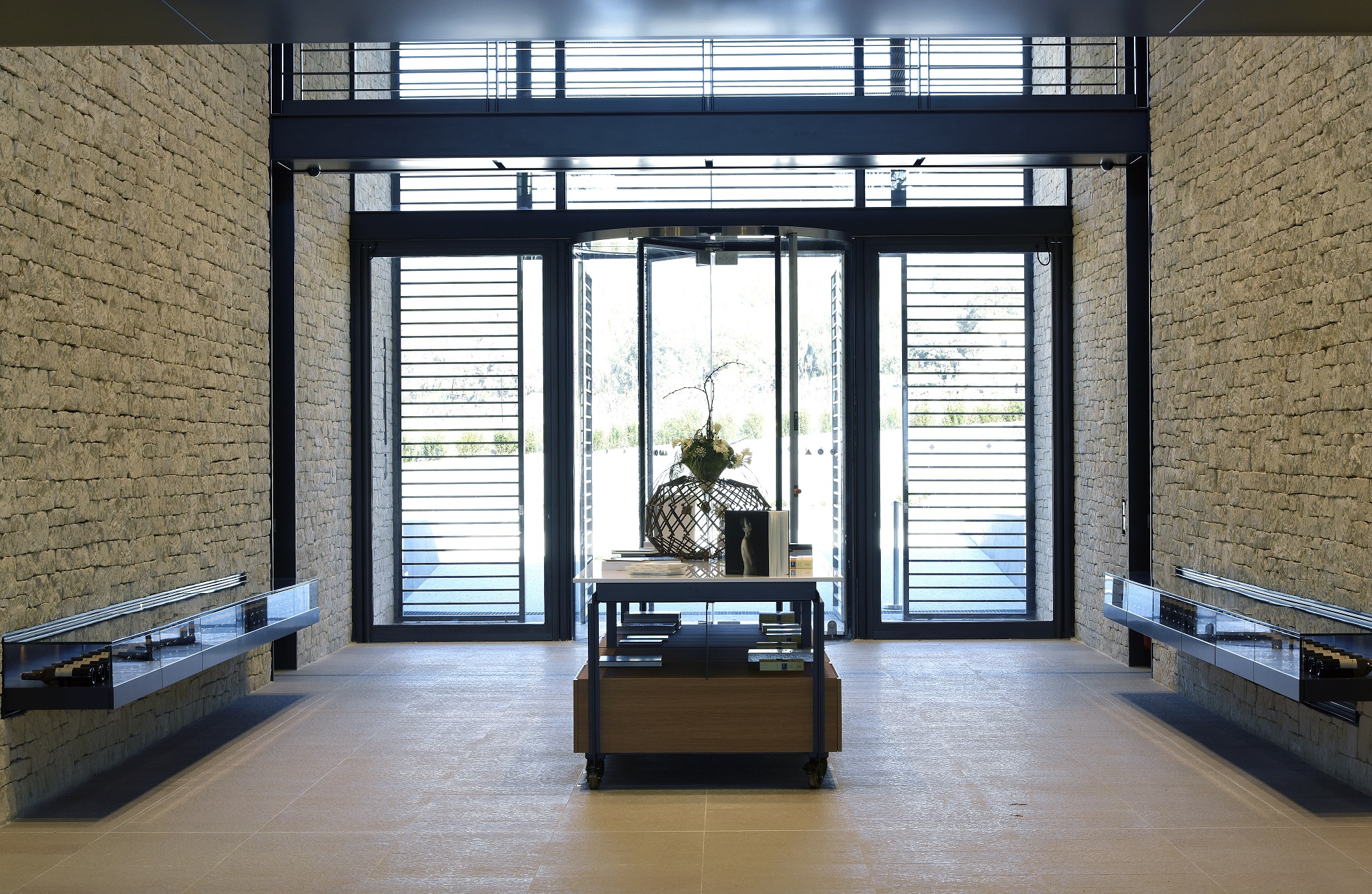 L’Architecture & la Vigne ; le bâtiment impression avec son mur en pierres de 80 mètres de long et 8 mètres de hauteur. Les visiteurs sont plongé dès leur entrée au coeur du processus de vinification grâce à une scénographie bien pensée.