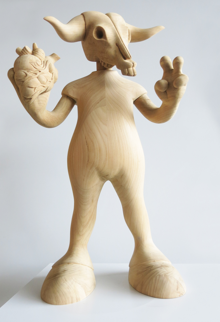 Sculpture en bois Teck, 68 cm, 2018.