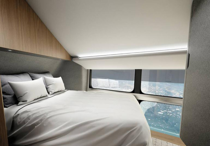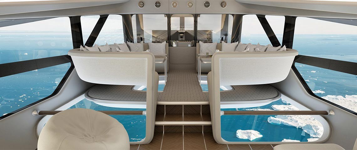 Ce jet privé est conçu pour accueillir 19 passagers et membres d’équipage pour une expédition de 3 jours. Il ne nécessite pas obligatoirement de piste pour atterrir, mais simplement d’une surface plane.
