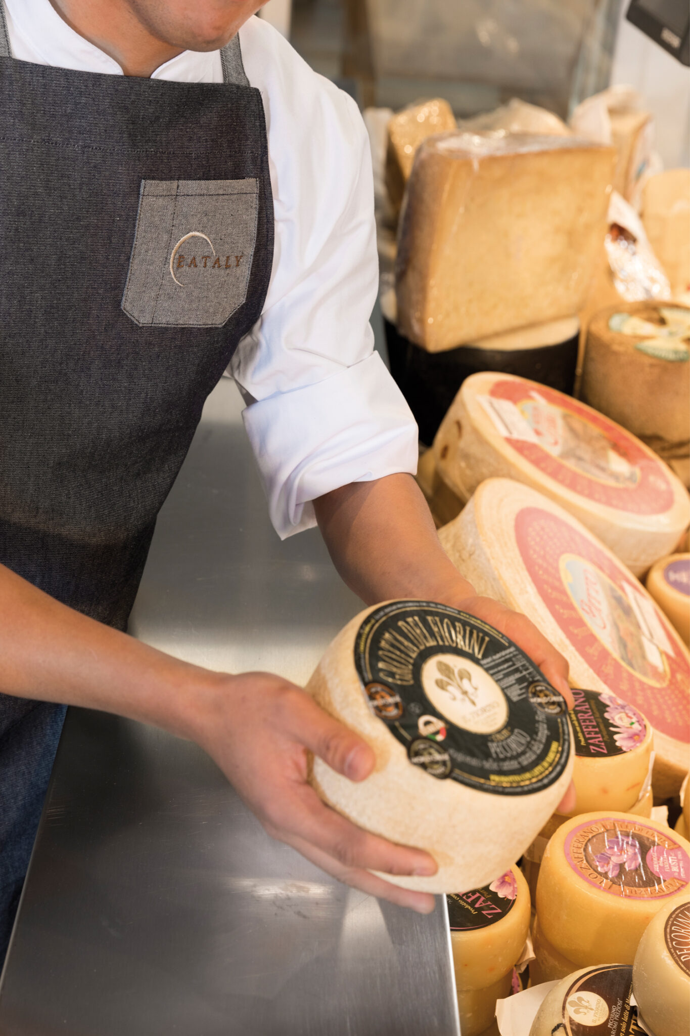 À l’origine du concept de cet immense marché italien, un entrepreneur visionnaire originaire du Piémont, Oscar Farinetti, qui ouvre son premier magasin Eataly à Turin en 2007. L’homme, ensuite rejoint par ses fils Francesco, Nicola et Andrea, inaugure d’autres adresses partout dans le monde – 39 au total pour l’instant – de New York à Tokyo, en passant par Moscou ou São Paulo. Le succès de cette aventure ? Être parvenu à mettre à l’honneur le savoir-faire gastronomique de son pays tout en s’inspirant du slow food et en encourageant une production et une consommation plus responsables. En France, c’est le groupe Galeries Lafayette qui détient la franchise exclusive de la marque Eataly. Pour sa première ouverture parisienne, le groupe a choisi d’implanter l’enseigne dans deux bâtiments d’exception, entièrement réhabilités, avec des intérieurs modernes, et reliés par une cour de marché de fruits et légumes à ciel ouvert, d’une surface totale de 2 500 m2. Espaces alimentaires, points de restauration – parfois avec terrasse pour des « aperitivo alla parigina » – comptoirs ambulants, etc., Eataly a été pensé comme « un lieu de transmission du bien-manger ».