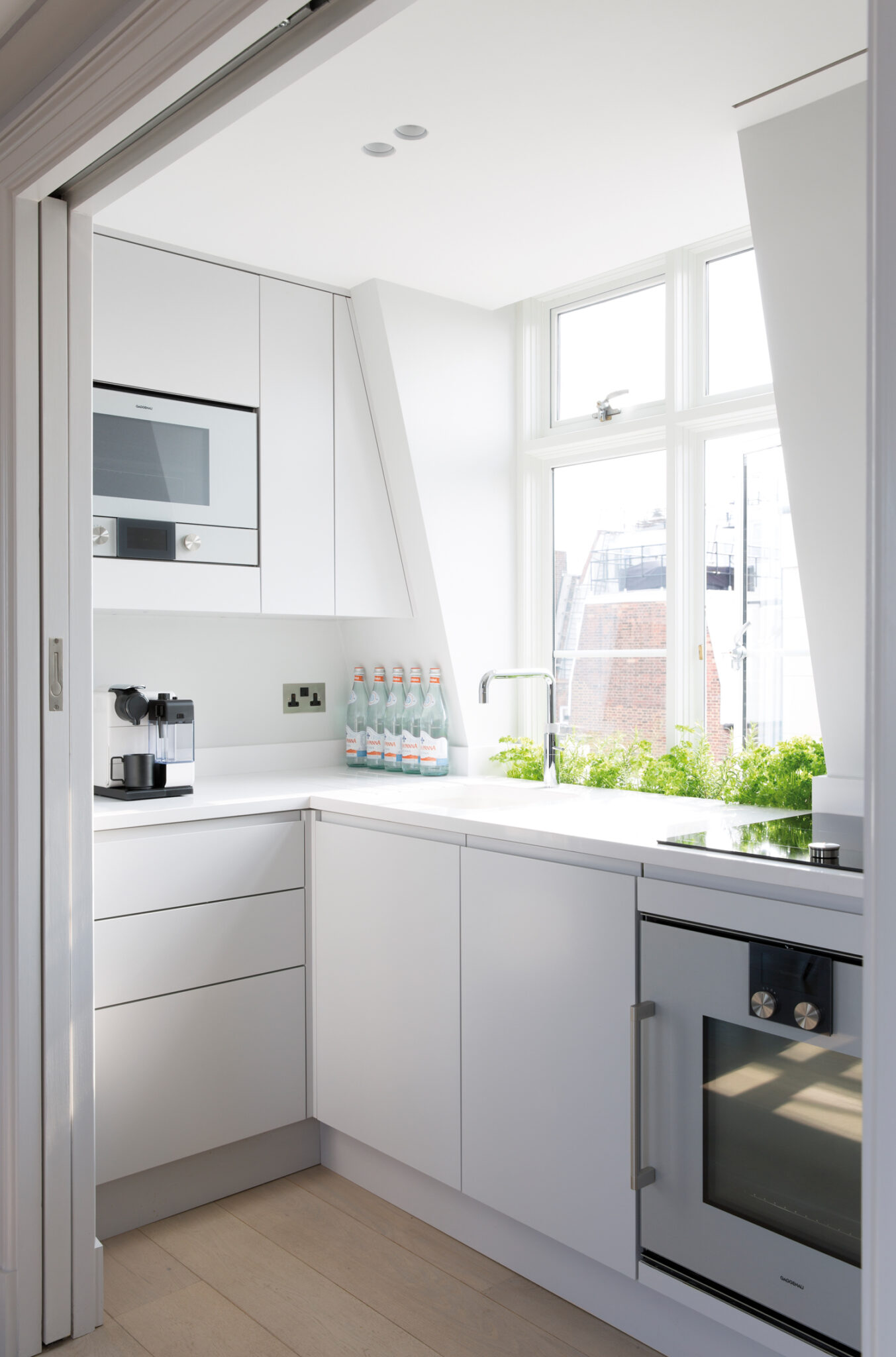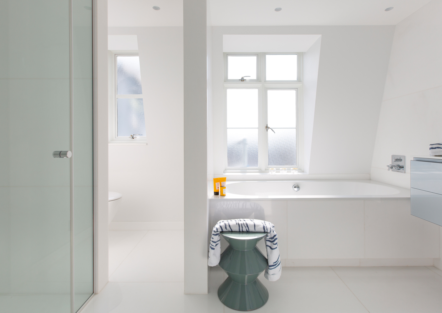 Dans un autre quartier résidentiel londonien convoité, aux allures de petit village, à Marylebone, Maurizio Pellizzoni a pensé cet appartement de 70 m2, découvrant également des panoramas sur la ville. Et surtout, il a optimisé les volumes de manière spectaculaire et transformé ce petit bien en un bijou au design branché, inspiré par Coachella…
