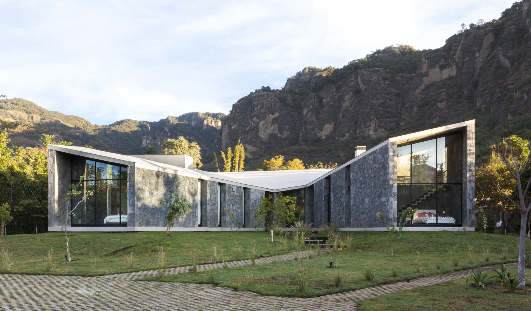 Située à Tepoztlán, à 60 kilomètres au sud de Mexico, l’une de leurs dernières réalisations, la MA House, voisine avec deux grandes montagnes et embrasse ce paysage aussi rugueux que merveilleux. L’architecture de la maison a été pensée pour mettre en valeur les plus belles vues. Aussi, elle dévoile une succession d’espaces géométriques ouverts et fermés avec des diagonales qui coupent deux patios.