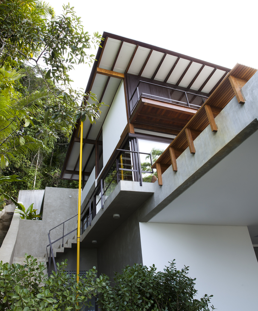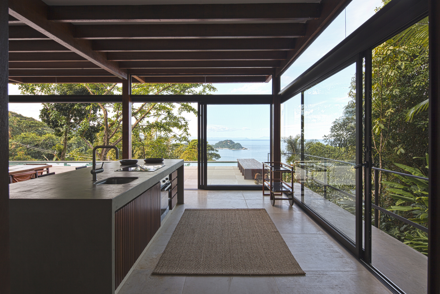 La maison Tijucopava est située dans une réserve de forêt atlantique sur la côte de l’État de São Paulo, elle fait face à une mer et un paysage époustouflant qui l’entoure.