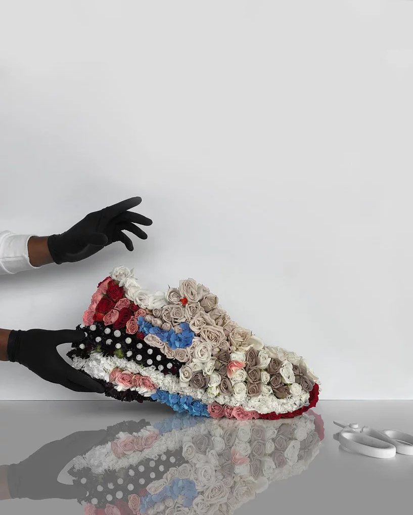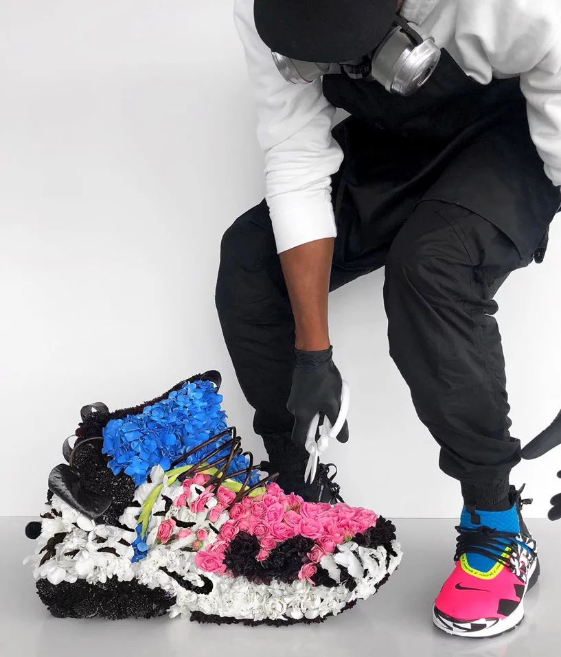 M.Flower Fantastic “MFF“ est un artiste basé à New York qui a d’abord séduit internet avec sa revisite de la Air Max 97 de Serena Williams en chef d’œuvre floral lors de l’US Open. MFF utilise ses compétences autodidactes pour amener une forme d’art sous-estimée à l’avant-garde de la culture pop et du monde des arts visuels. L’artiste combine la fleuristerie, la sculpture et les sneakers les plus recherchées.