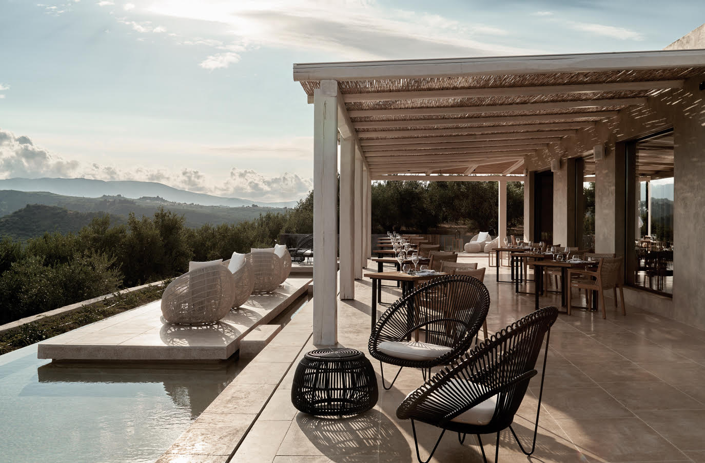 Les Italiens l’appellent La Fiore di Levante. Une petite parenthèse tout en bleu et vert qui s’inscrit quelque part entre les côtes de la Grèce, celle du sud de l’Italie et celles de l’Albanie. Une situation géographique de rêve dont l’Olea All Suite s’est emparé pour offrir un refuge de 93 villas flanquées sur le haut d’une colline, dominant la station de Tsilivi.