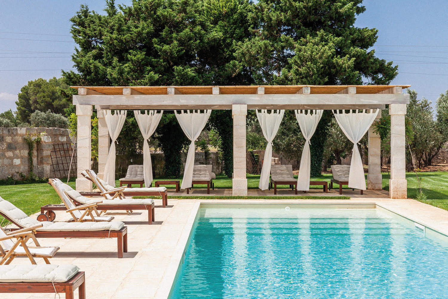 Il Tabacchificio est une icône du design industriel des années 1930. Cette ancienne usine de tabac a été transformée en une maison impressionnante par l’architecte Raffaele Centonze de Lecce. Il Tabacchificio se trouve au centre de ses vastes jardins entourés de murs, dont la plupart sont recouverts de gazon. Les oliviers et les arbres fruitiers autour du périmètre renforcent le sentiment d’intimité et de sérénité ; des pins méditerranéens ombrageux flanquent l’impressionnante allée.