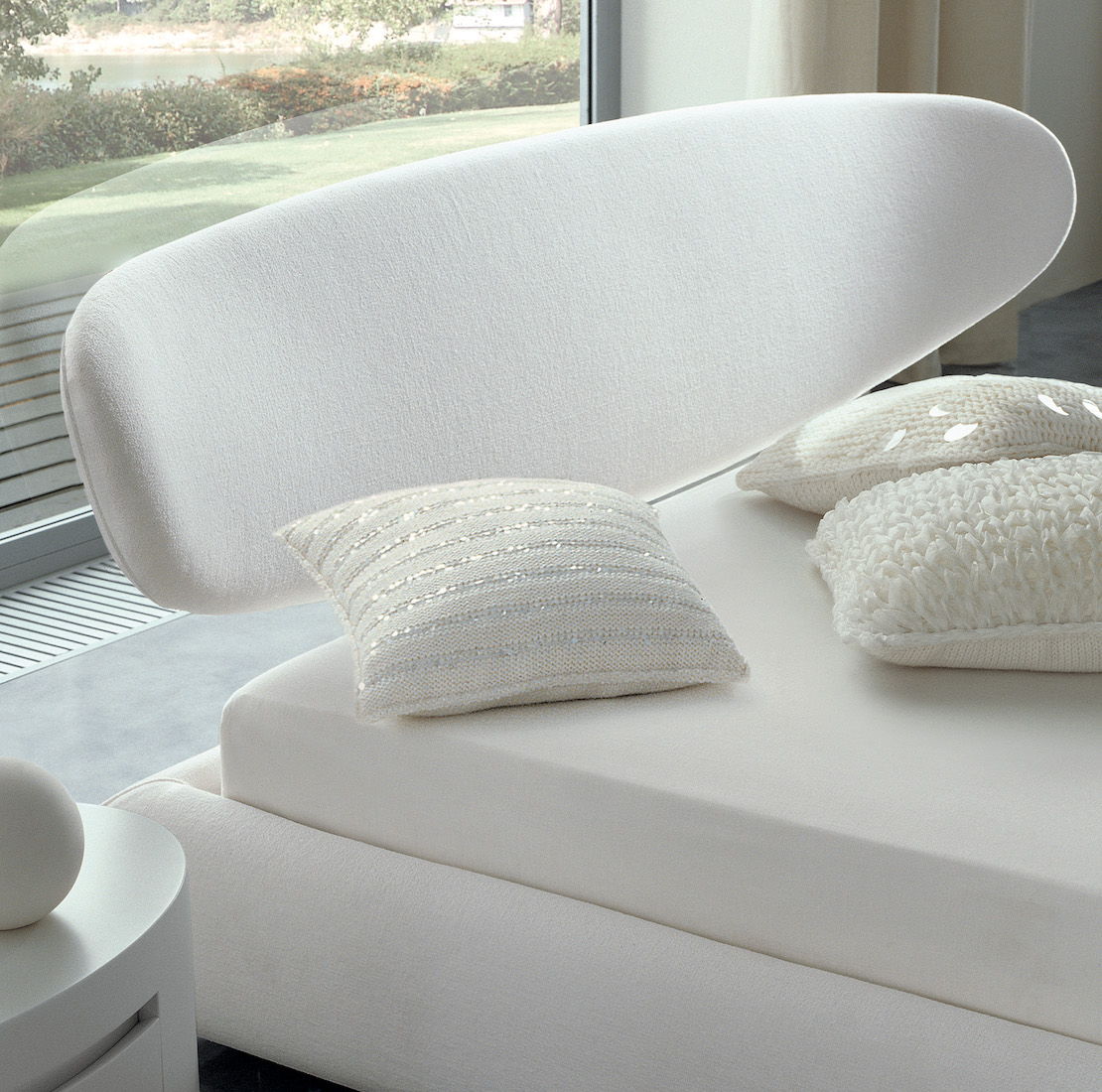 La tête de lit particulière est éloignée du cadre de lit, en cuir épais ou recouvert de tissu, créant un design enveloppant, un câlin articulé au goût contemporain et élégant. Les détails fins et le raffinement des matériaux font de Nuba un triomphe de la personnalité.