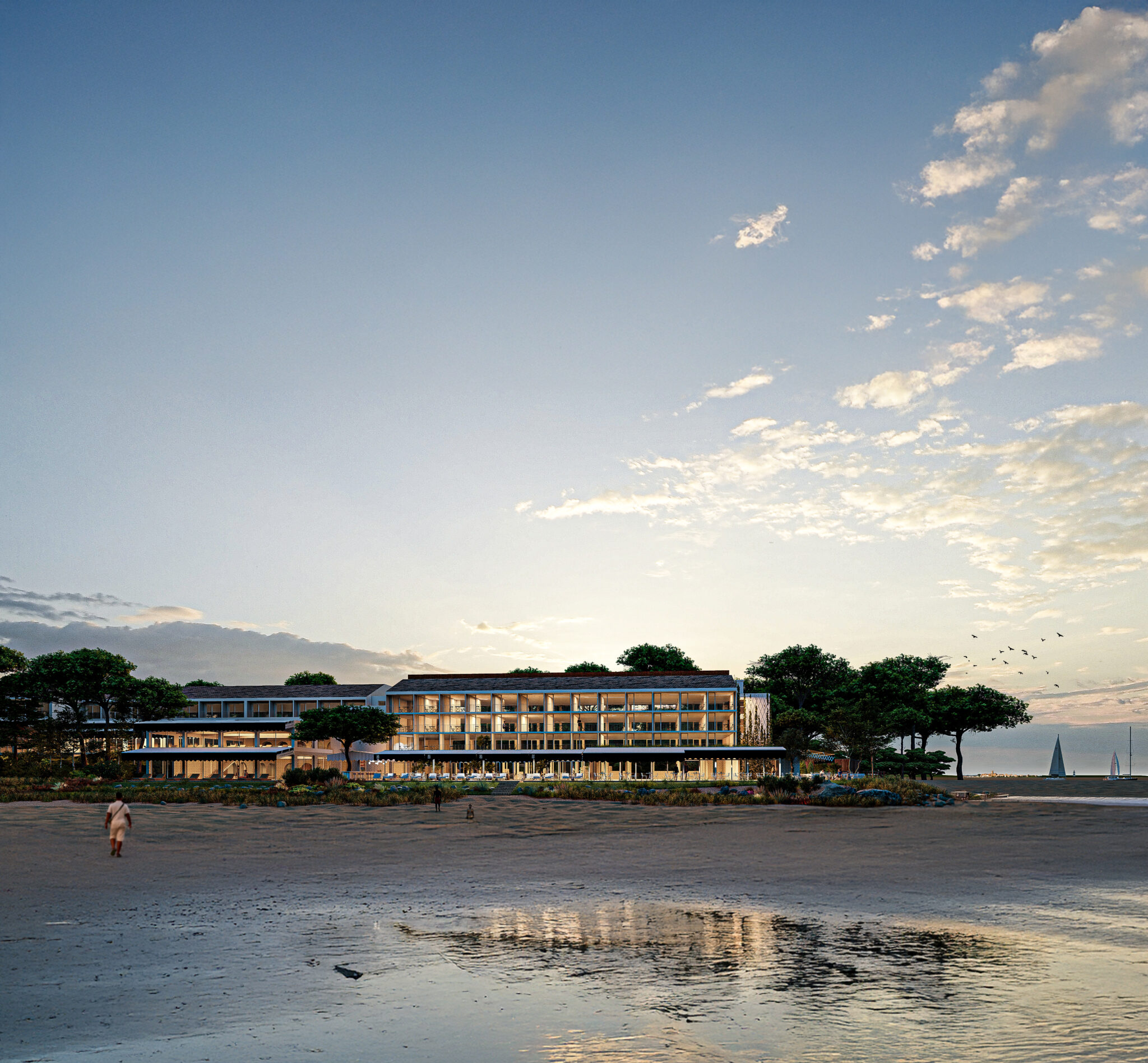Le restaurant se déploiera autour d’un espace principal ouvert sur l’océan, prolongé par une terrasse face à l’Atlantique. Une Table du Chef plus confidentielle, d’une dizaine de couverts, viendra dans un second temps enrichir l’expérience, offrant un moment plus intime et immersif. L’ensemble comptera 150 places réparties entre intérieur et extérieur, dans une atmosphère de maison côtière aux tonalités douces, évoquant le sable, la mer et le ciel. Les cuisines ouvertes dialogueront avec le paysage, inscrivant l’expérience dans une continuité naturelle entre dedans et dehors.