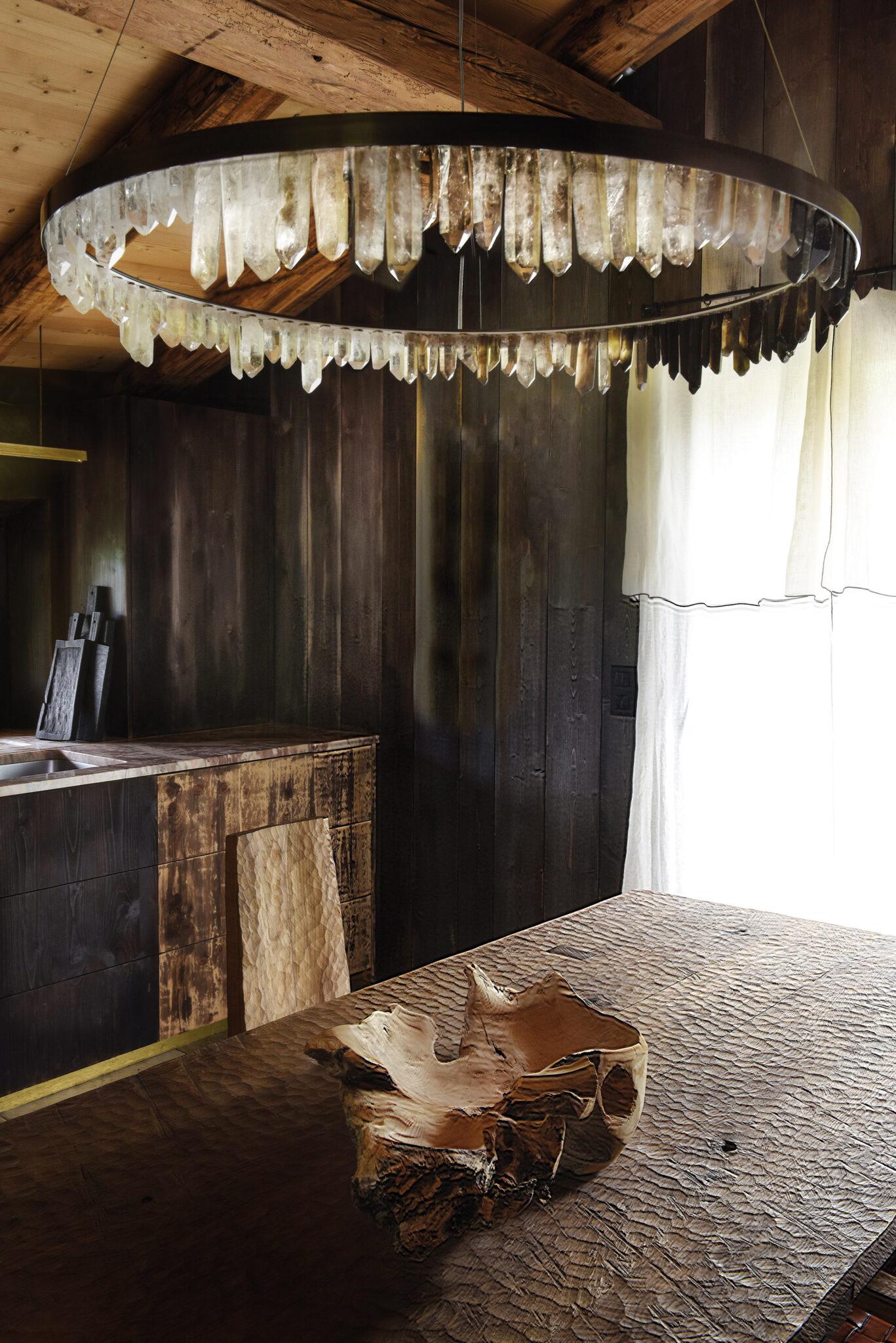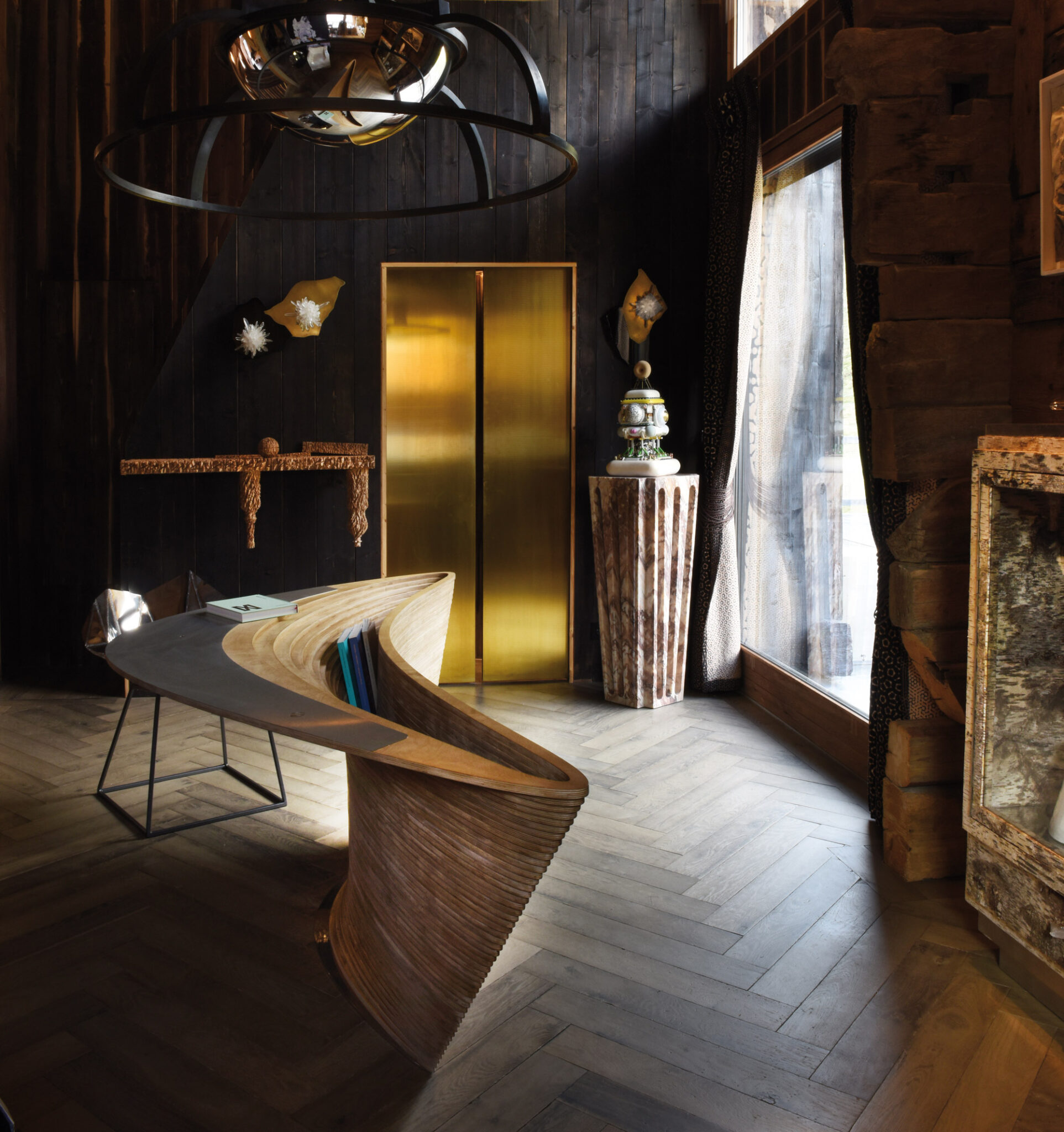 J’ai scénographié ce lieu comme un espace à vivre. Dans les Alpes, on retrouve certains des créateurs que je présente à Paris, mais j’en dévoile aussi d’autres, comme Christian Astuguevieille et son mobilier en bois et corde, ou Maria Koshenkova et ses sculptures en bois et verre.