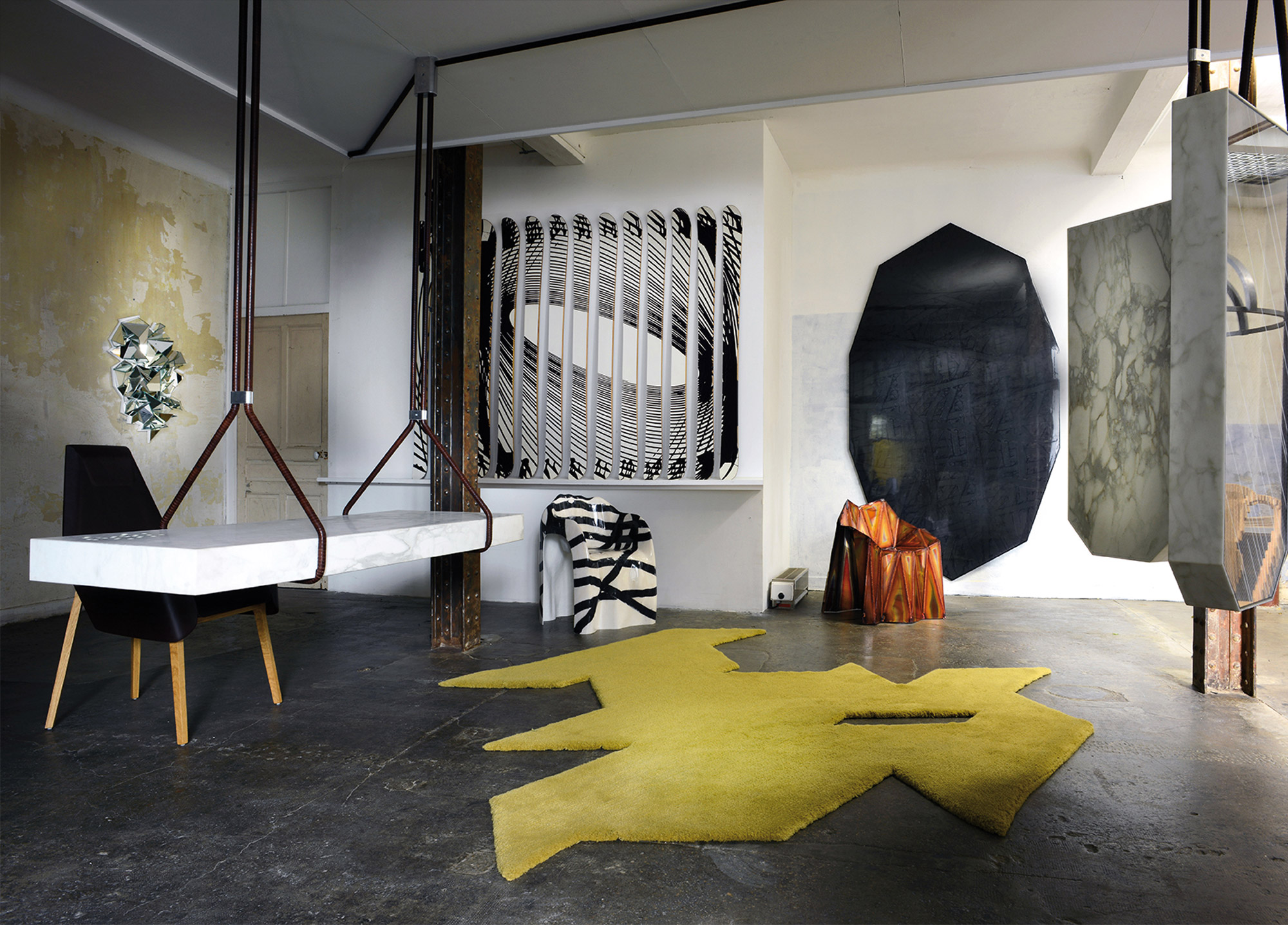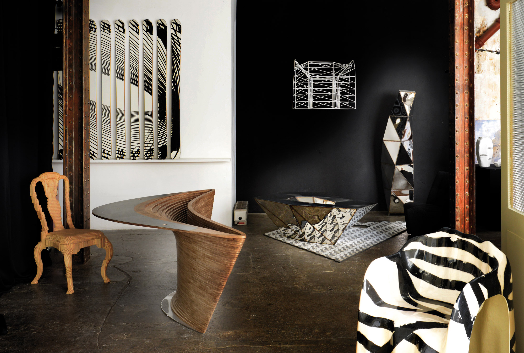 puis j’ai eu des clients privés partout dans le monde… Nous avons été assez actifs dès le début en organisant pas mal d’expositions. J’ai ensuite sélectionné d’autres artistes pour pouvoir proposer un certain choix, comme Emmanuel Bossuet et son papier peint, Mathias Kiss, son fameux miroir, son canapé, son tapis, etc. L’architecte Peter Marino, qui a acheté le premier miroir de Mathias Kiss, a d’ailleurs été l’un de mes premiers clients !