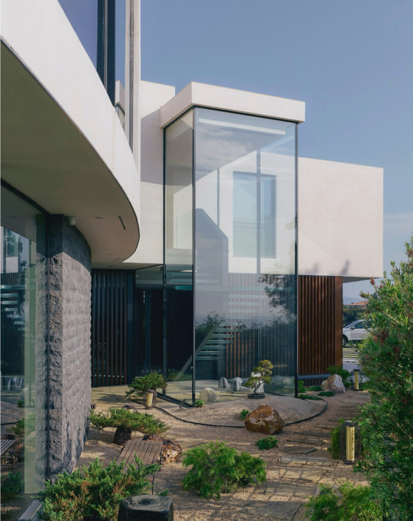 L’architecture repose sur une recherche constante d’harmonie, entre transparence et protection, lignes modernes et sensations chaleureuses. Les volumes, volontairement épurés, dialoguent avec une palette de matériaux naturels qui confèrent à l’ensemble une sophistication discrète, loin de toute démonstration. Ici, le luxe s’exprime par la justesse des proportions, la clarté des espaces et la qualité des matières.