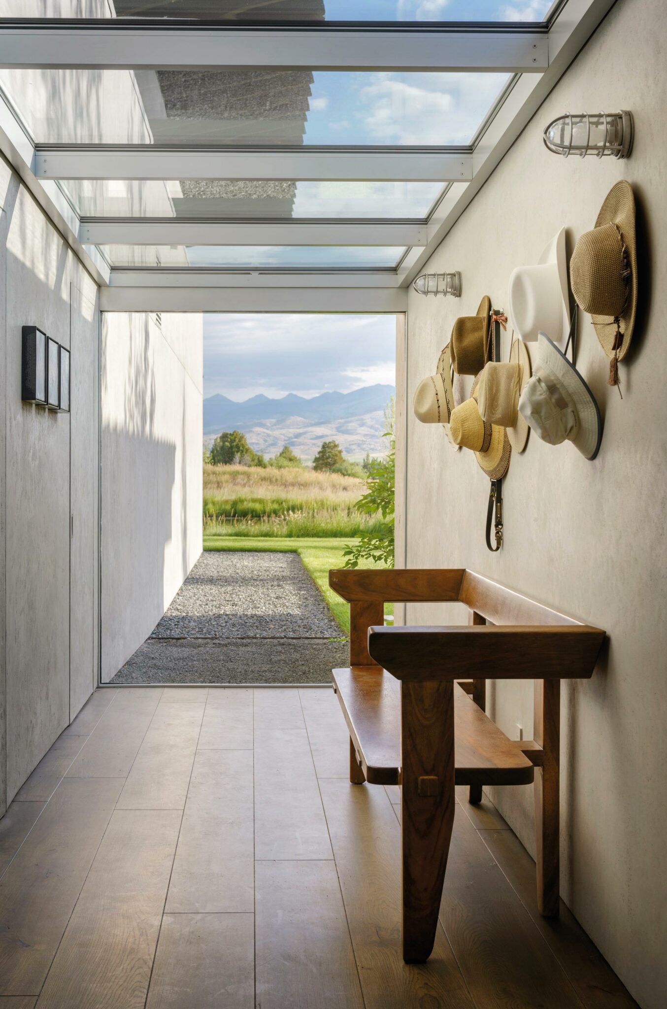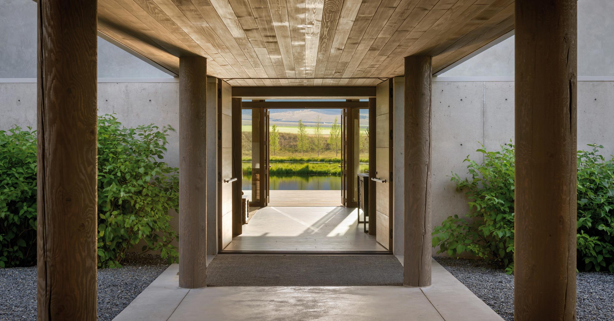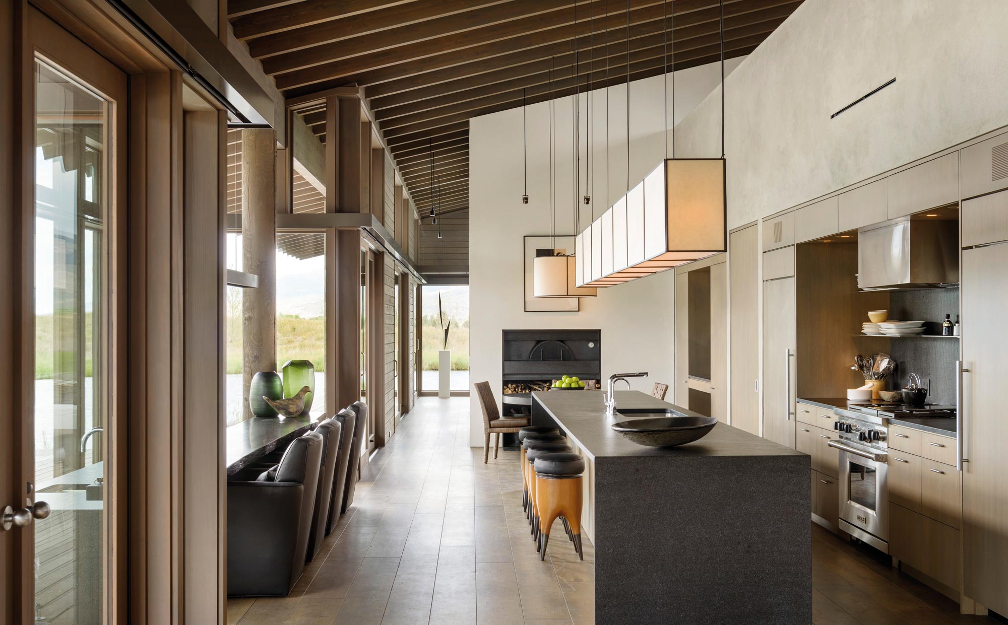 Il paraît un peu loin, le temps où paissaient là les troupeaux des fermiers, où l’on faisait encore pousser la luzerne et où quelques âmes solitaires venaient se reposer et pêcher quelques poissons en profitant béatement de la beauté naturelle du Montana. Une beauté qui aujourd’hui, si elle est hautement protégée, est aussi le décor naturel d’un des projets de l’agence d’architecture Suyama Peterson Deguchi. Installée au cœur d’un domaine de près de 160 hectares, la résidence Montana semble avoir tout pour plaire. Inspirée des vieilles fermes de cet état agricole, elle prend ainsi la forme étirée de celles qui étaient alors de rigueur. Bâtie dans les règles de l’art de l’agence, mais aussi dans celles de la région et de sa tradition – du bois, du verre et du béton –, la résidence Montana est aussi pourvue de tous les conforts de la modernité. Celui, plutôt formel, de son intégration dans un paysage laissé consciemment « sauvage » par les paysagistes Jeremy Stark et Kalan Murano, mais aussi par sa gestion de l’espace qui offre aux hôtes une connexion directe avec le milieu qui les entoure. Grâce à ses longues baies de verre, on y déambule en longeant la frontière du dedans/dehors, protégée toutefois par un intérieur chaleureux et confortable. Un intérieur entièrement imaginé par le décorateur d’intérieur Christian Grevstad qui, lui aussi, s’est inspiré des codes des grands espaces américains pour offrir à cette famille de Seattle, la maison secondaire dont ils avaient rêvé.