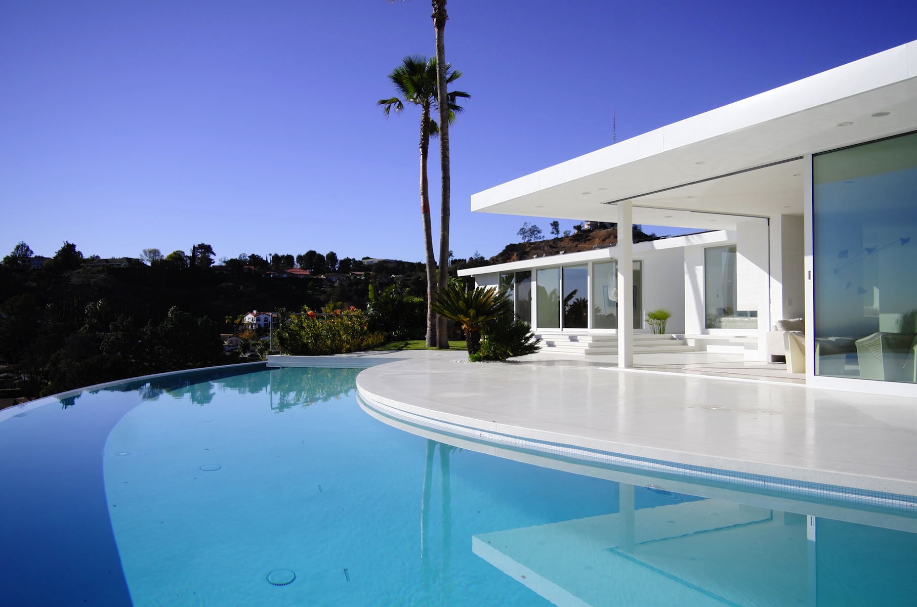 Sur un promontoire élevé de l’iconique Mulholland Drive à Los Angeles et originellement construite en 1961, la rénovation et l’addition de cette résidence reflètent le style d’architecture de l’époque.