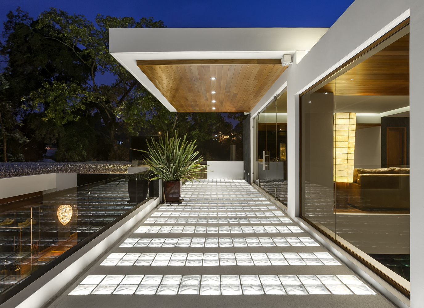 Il s’agit d’une résidence entourée de végétation, les architectes ont donc joué avec l’extérieur en intégrant les jardins et vues naturelles dans les espaces intérieurs, ce qui mène à un mélange entre intérieur et extérieur.