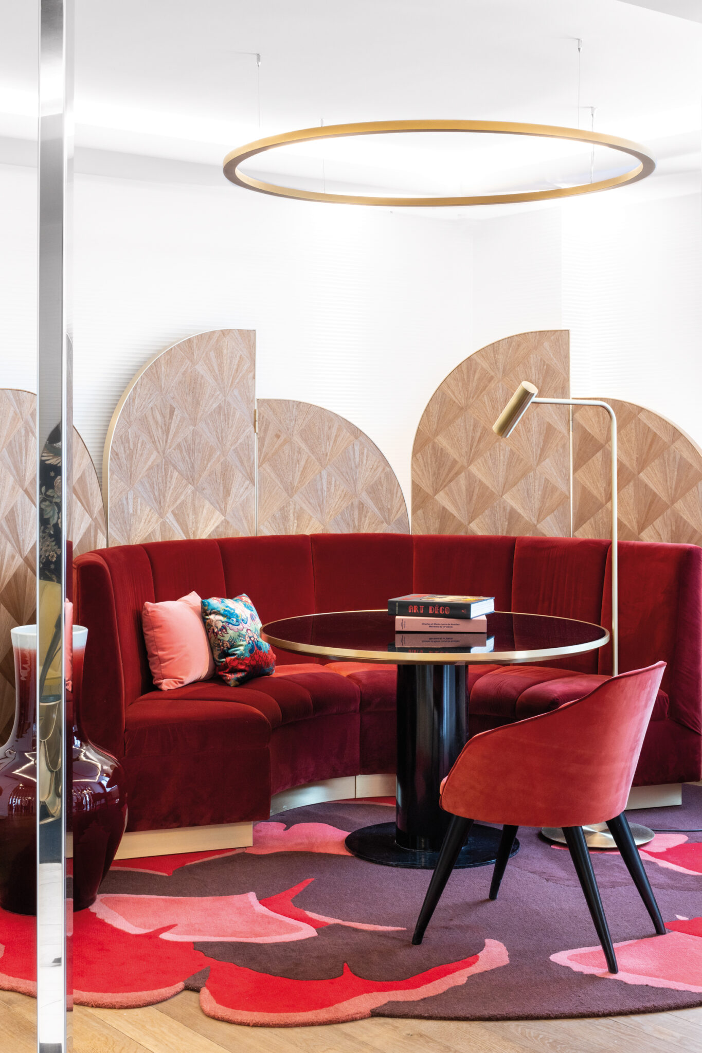 Laurent Maugoust : Les lieux chargés d’histoire un peu classiques, les bâtiments haussmanniens, XVIIIe, XIXe, Art déco… Mon propos n’est pas de raconter quelque chose de gratuit. Je suis davantage dans la lignée des architectes comme Putman qui pensent des projets indémodables que dans la tendance. J’essaie de respecter le lieu, le bâtiment, l’espace. L’Hôtel Victor Hugo à Paris par exemple est dans un bâtiment Art déco très beau. J’ai adoré retravailler avec tous ces codes Art déco en architecture intérieure, sans rupture entre le dedans et le dehors, tout en étant moderne. Cela ne sert à rien de faire des pastiches. J’aime aller plus loin.