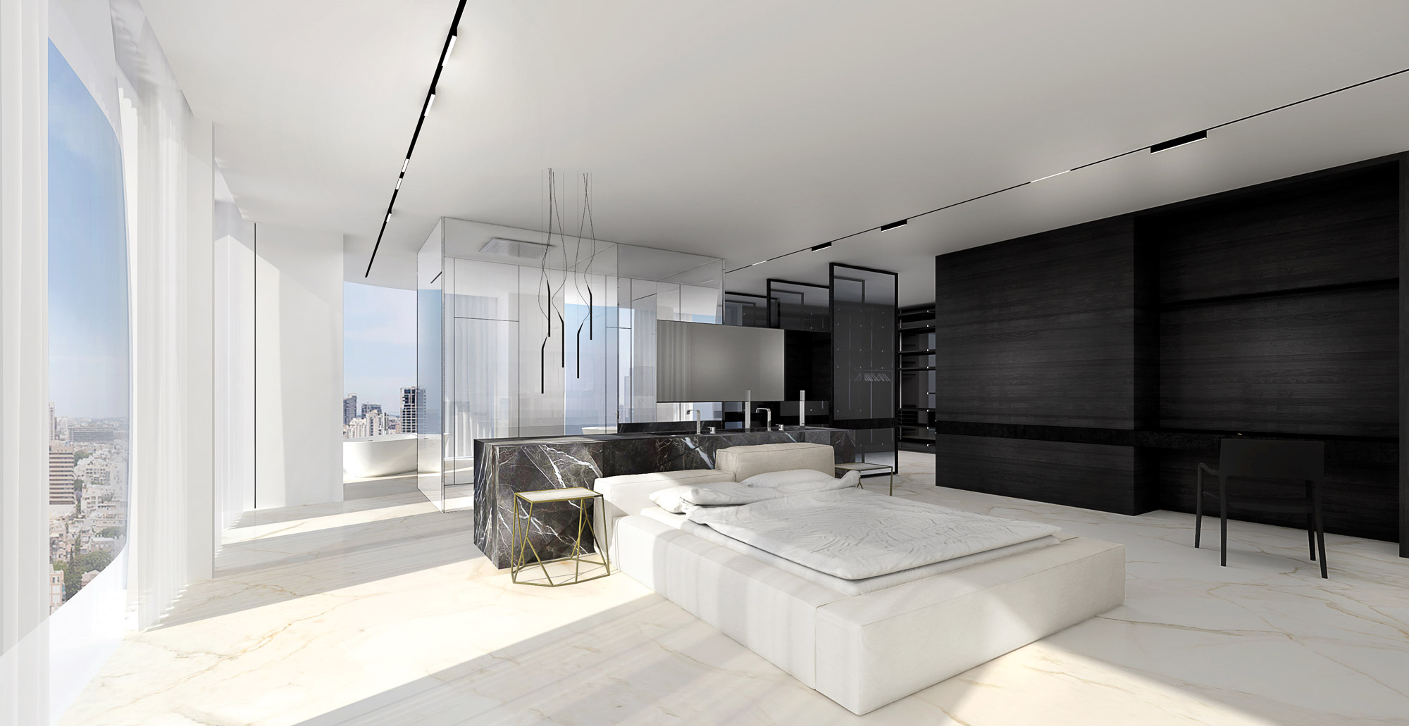 Son diplôme d’architecte du City College (New York) en poche, Emmanuel Shallem retourne au pays pour commencer son apprentissage. S’enchaînent alors plusieurs années passées auprèsde quelques grands qui apporteront la « rigueur, l’expertise et la connaissance » au jeune homme. Puis il y aura l’agence de Kimmel Eshkolot grâce à laquelle Emmanuel développe et affine ses compétences dans la construction de bâtiments publics. Une véritable école d’humilité et de réflexion, pour tous ceux qui s’y frottent ! Arrive enfin l’heure de créer sa propre agence. Ce sera Shallem tout simplement. Un nom pour une agence qui, depuis 2003, est aussi devenue une griffe. Celle de la rigueur mais aussi de la fraîcheur d’un trait sans cesse renouvelé pour apporter de nouvelles solutions. De nouveaux contours. Son dada ? Celui du design ! Un design constamment poussé au-delà de ses limites, pour, là encore, tenter d’apporter une nouvelle syntaxe architecturale. Sans esbroufe pourtant, Emmanuel Shallem, parle plutôt de mise en scène, d’une scénographie théâtrale qui mettrait en branle tous les artifices mis en place pour composer ses espaces. Résidences, commerces, restaurants ou habitations privées sont ainsi étudiés, de façon singulière et exclusive, par l’œil de celui qui affiche son admiration pour les agences de Marcio Kogan ou celle de Herzog & De Meuron. Il est vrai que, comme ses pairs, Shallem fonctionne sur la mise en scène, au travers de pièces de mobiliers design dont ses espaces sont agréablement habillés, mais aussi d’œuvres d’art comme celles de Ron Aloni ou celles d’Atar Geva (Maison C, Loft H et Loft G) qui hantent les murs de ses projets. Des marqueurs qui montrent tout le soin que met l’architecte à la tâche, dans des espaces qui jouent tout autant sur les horizontales que les verticales, l’ouverture et la fermeture. Comme dans le projet de la Maison C, une résidence de 1 000 m2, entièrement ouverte sur un jardin qui semble s’inviter jusque dans l’intérieur de la maison, grâce aux matériaux qui empiètent de part et d’autre sur les limites naturelles des deux mondes. À l’inverse, la façade d’entrée sera, quant à elle, obstruée, autant que faire se peut, consignant le monde extérieur à la rue. Dans le Loft H, Shallem a, là encore, joué sur les hauteurs, pour relier les trois étages d’un même immeuble et transformer l’espace en un seul appartement ; un tout aérien et léger qui se fond dans l’atmosphère qu’il a pénétrée. Mais c’est aussi au travers de son utilisation des matériaux, que Shallem marque son territoire. Une juxtaposition de matières minérales et brutes qui permet de donner un sens de lecture à sa gestion spatiale. C’en est autant pour le Loft Gold ou la Maison Z où les multiplications des matériaux – bois, pierre mais aussi verre, béton et acier – balisent les espaces au-delà même de leurs périmètres. Des périmètres qui semblent se réjouir de cette attention portée par un architecte qui aime tant jouer avec leurs limites.