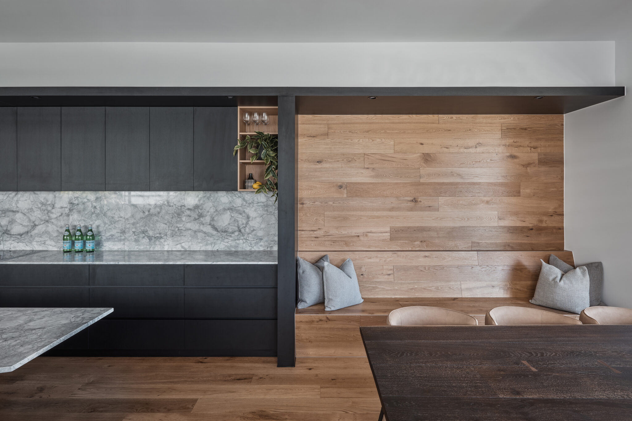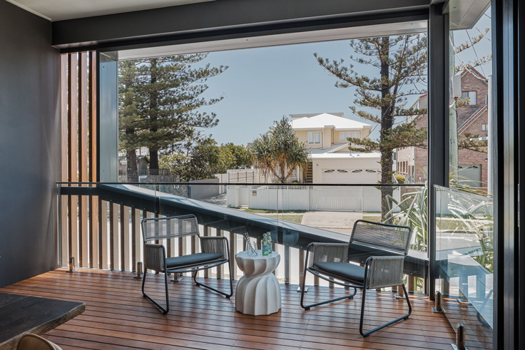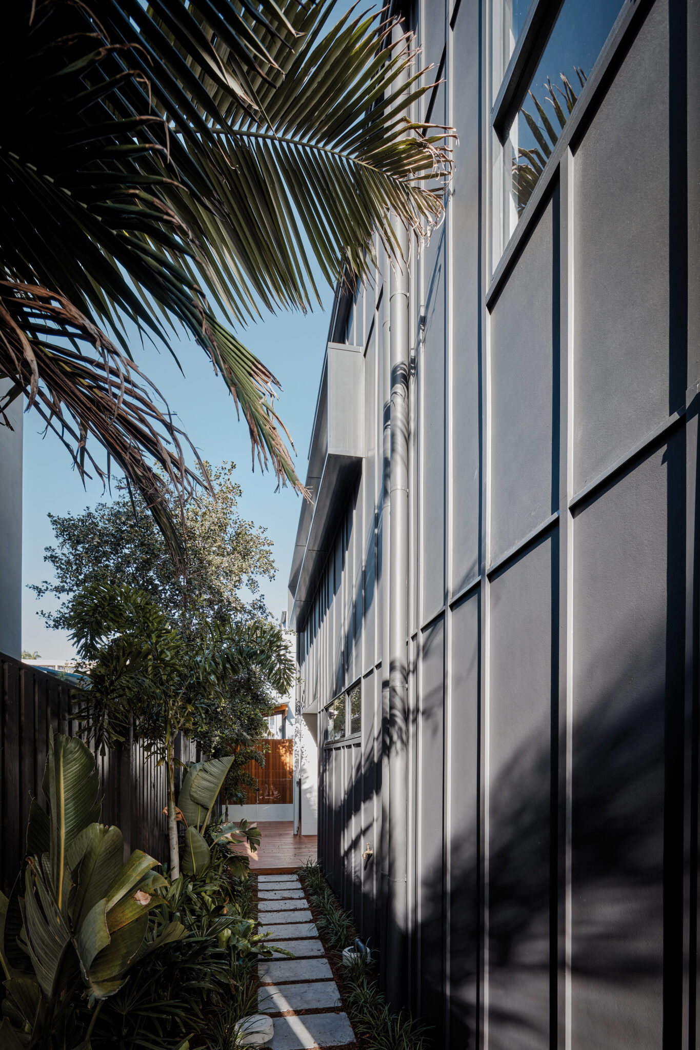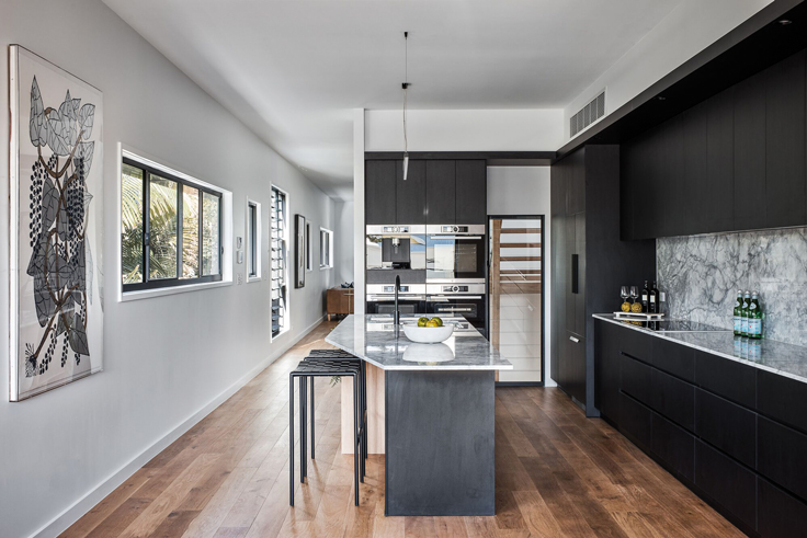 Rory Spence : En réalité, il s’agit d’un projet personnel. Nous sommes tombés sous le charme de cet ensemble, de ces deux maisons, de leurs trois étages, avec cette vue sublime sur la plage de Mermaid. Comme elles sont inscrites dans un hameau, il fallait architecturalement s’y insérer tout en essayant de s’en protéger en terme d’intimité. Il y avait donc un équilibre à trouver.