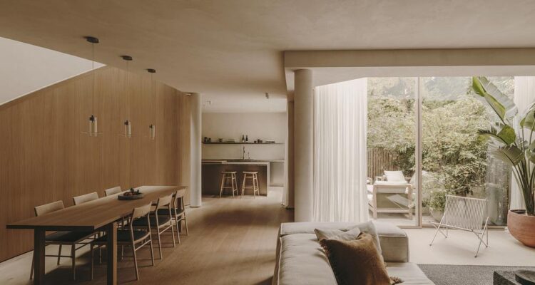 « L’objectif du projet était d’imaginer un lieu de vie contemporain, tout en conservant les principaux éléments constructifs, expliquent les architectes. Le propriétaire, recevant fréquemment des visiteurs, souhaitait également profiter d’un studio indépendant, avec accès sur la rue, pour accueillir ses hôtes pendant l’année. C’est la raison pour laquelle la maison est conçue avec deux espaces distincts qui peuvent être utilisés de manière indépendante si besoin. »