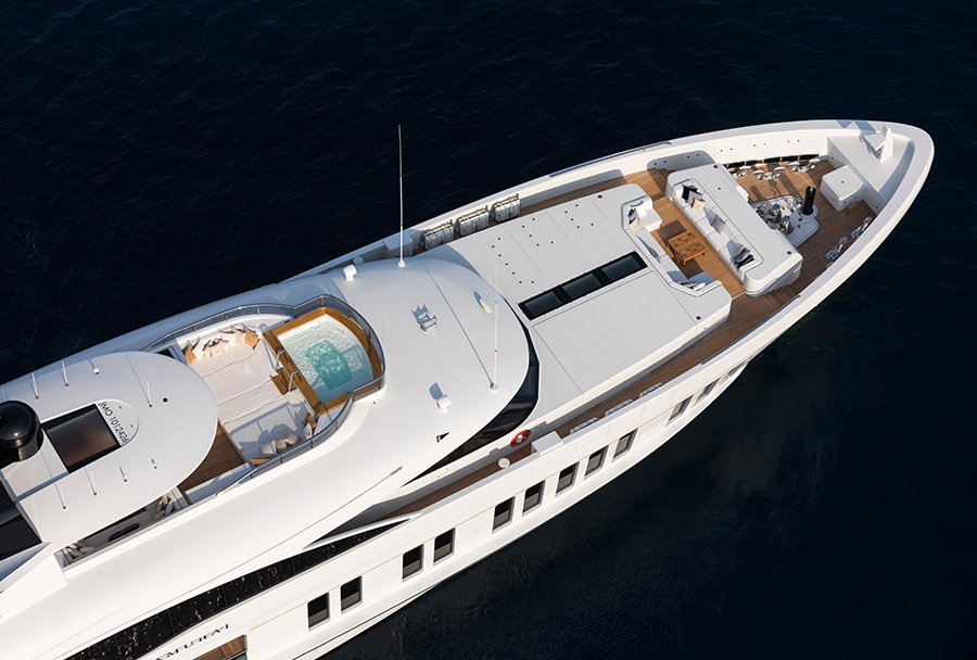 Avec un style extérieur de Omega Architects, une architecture navale de Van Oossanen et un design d’intérieur Redman Whiteley Dixon (RWD), Samurai associe la conception haut de gamme du nord de l’Europe à la capacité de construction de yacht.