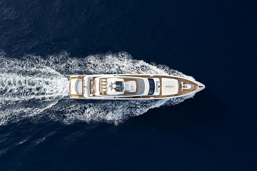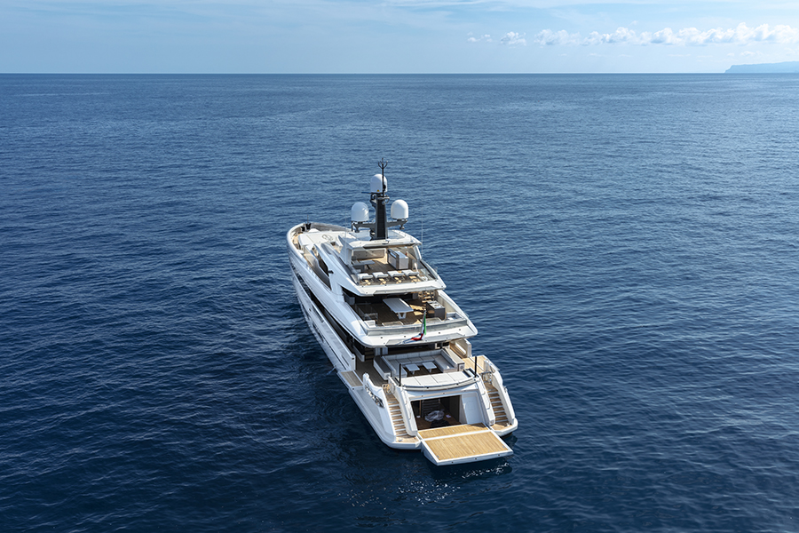 En mode hybride, l’un des deux arbres du moteur principal génère l’énergie électrique nécessaire au fonctionnement du système du deuxième moteur électrique pour la propulsion. À 12 nœuds, le yacht aura une autonomie de croisière d’environ 4000 nm. Dans ce mode, les deux générateurs diesel sont arrêtés pendant la navigation.