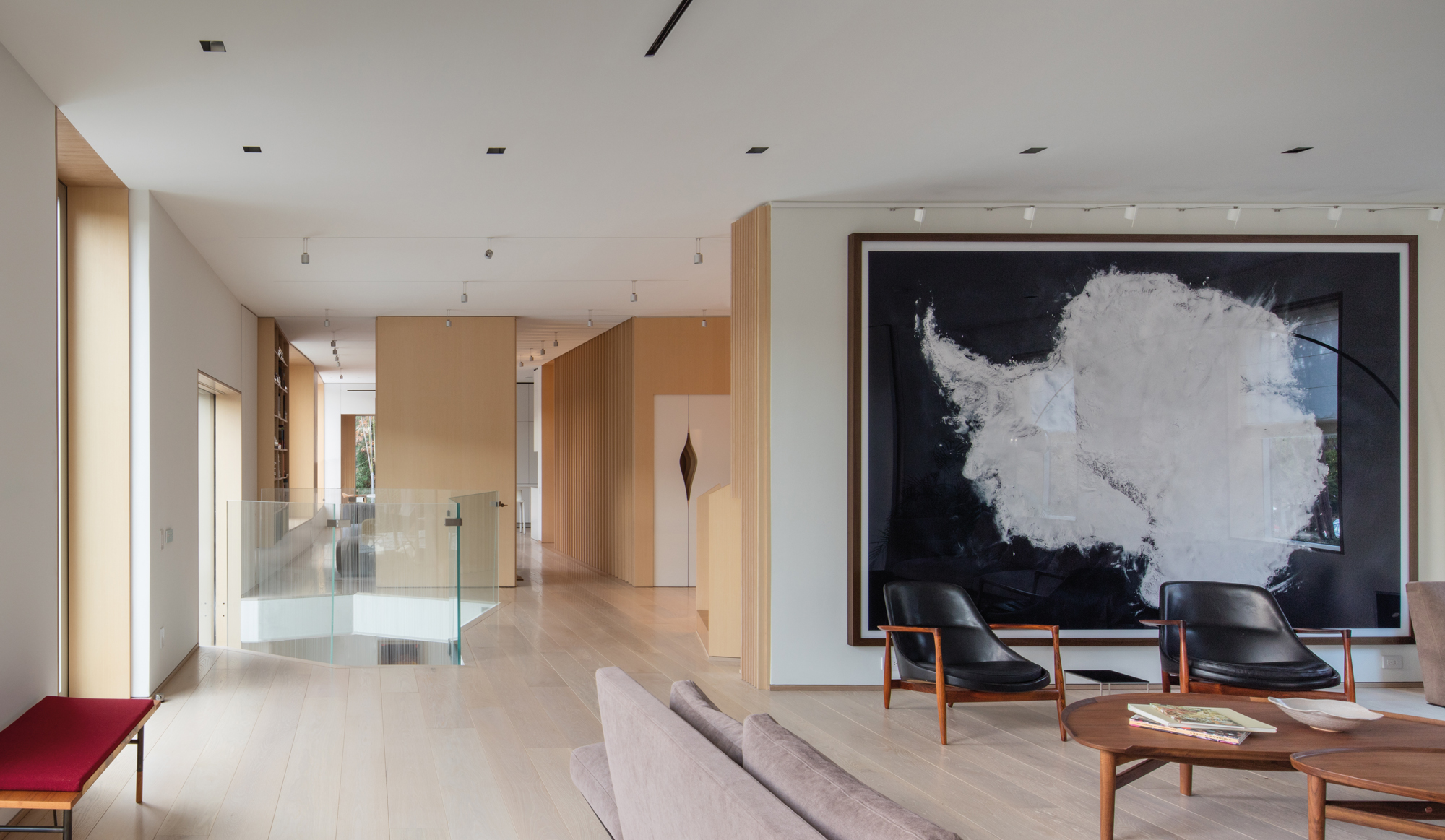 et structures de bois clair très graphiques. Le choix du mobilier participe également