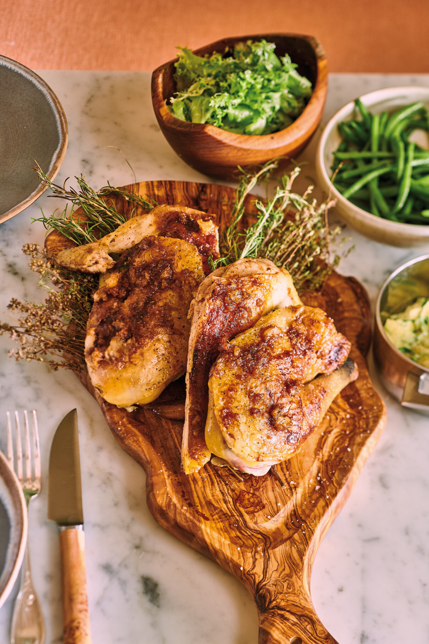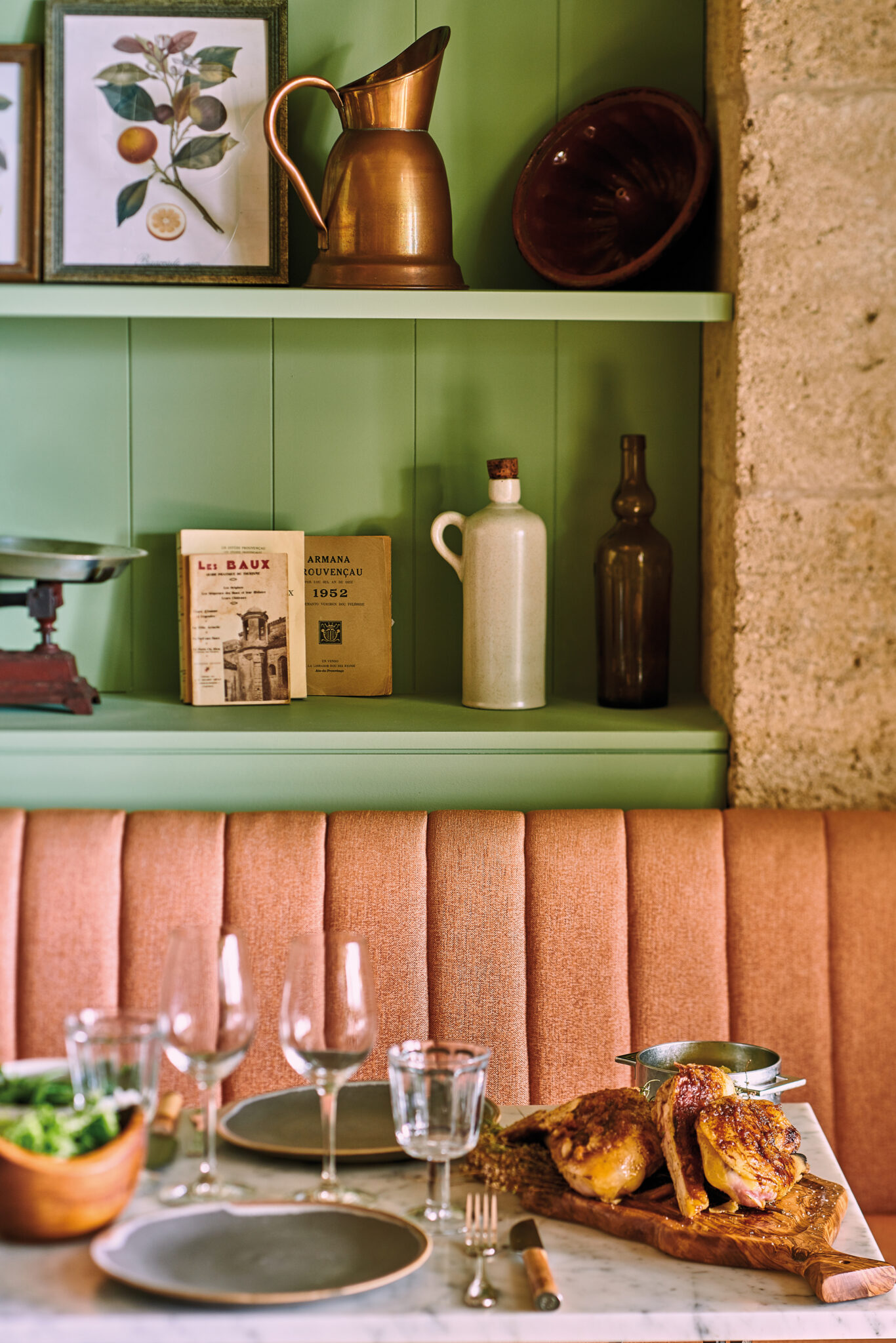 De l’union de ces deux hommes en quête d’excellence et de l’association des univers du chef – Clover Green et sa cuisine végétale et Clover Grill prônant les cuissons à la braise – est né ce restaurant gastronomique inspiré par le terroir provençal. Ici, le maestro des cuissons, maîtrisant aussi bien la braise que la broche ou le grill, magnifie les produits locaux à travers ses créations : Poisson de la pêche méditer- ranéenne cuit en feuille de figuier, Jus de tomates pressées, glace, huile d’olive, céleri et moutarde, Légumes des jardins de Provence, comme une anchoïade, sauce verte « Zéro Gras », etc. Des mets superbes qui côtoient ses plats signature comme Les Calmars sauvages préparés à la Carbonara, Le Homard bleu grillé ou encore la Pizza soufflée. Les délices du chef Piège se dégustent dans la salle de restaurant, conçue par l’agence de direction artistique Notoire. Le décor imite une chaleureuse maison de campagne où cohabitent vaisselle chinée, billots en bois et meubles retrouvés. Clover Gordes dispose également d’une fabuleuse terrasse surplombant la vallée verdoyante du Luberon où il fait bon se délecter… Un lieu parfait pour découvrir une cuisine de vérité aux saveurs essentielles.