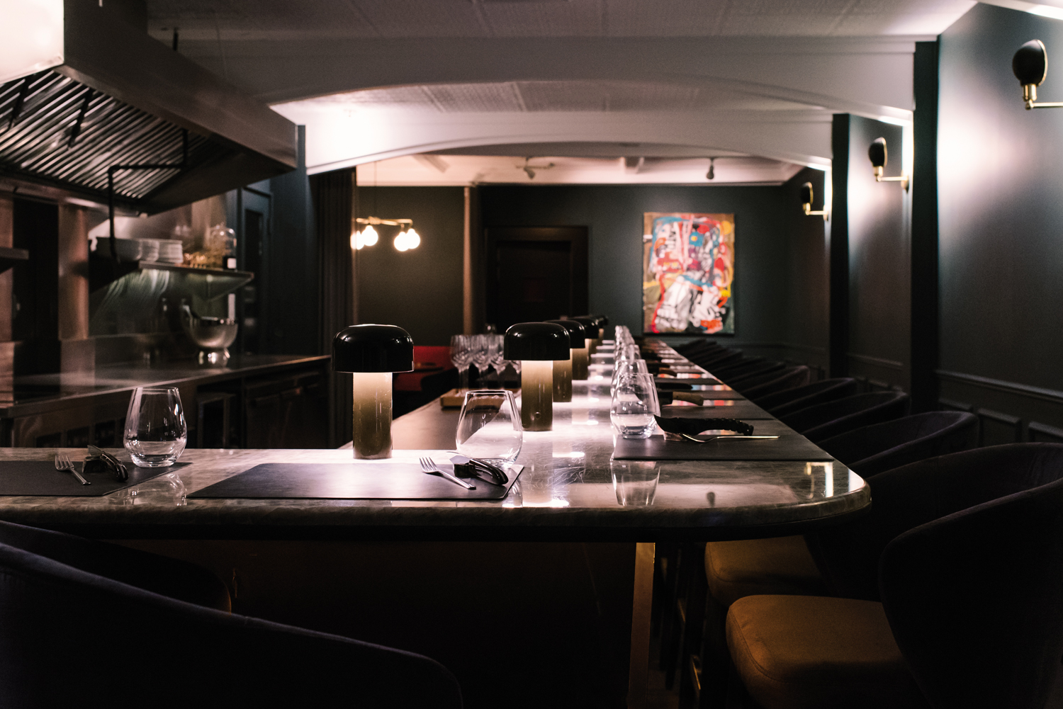 Dès l’entrée, une galerie d’art s’ouvre aux hôtes. Pour accéder à l’espace de l’élégant restaurant, on emprunte un passage secret peuplé d’œuvres d’art créées spécialement pour le lieu. Il convient ensuite de deviner derrière laquelle de ces œuvres se dissimule la porte qui permettra d’accéder à la salle du restaurant.