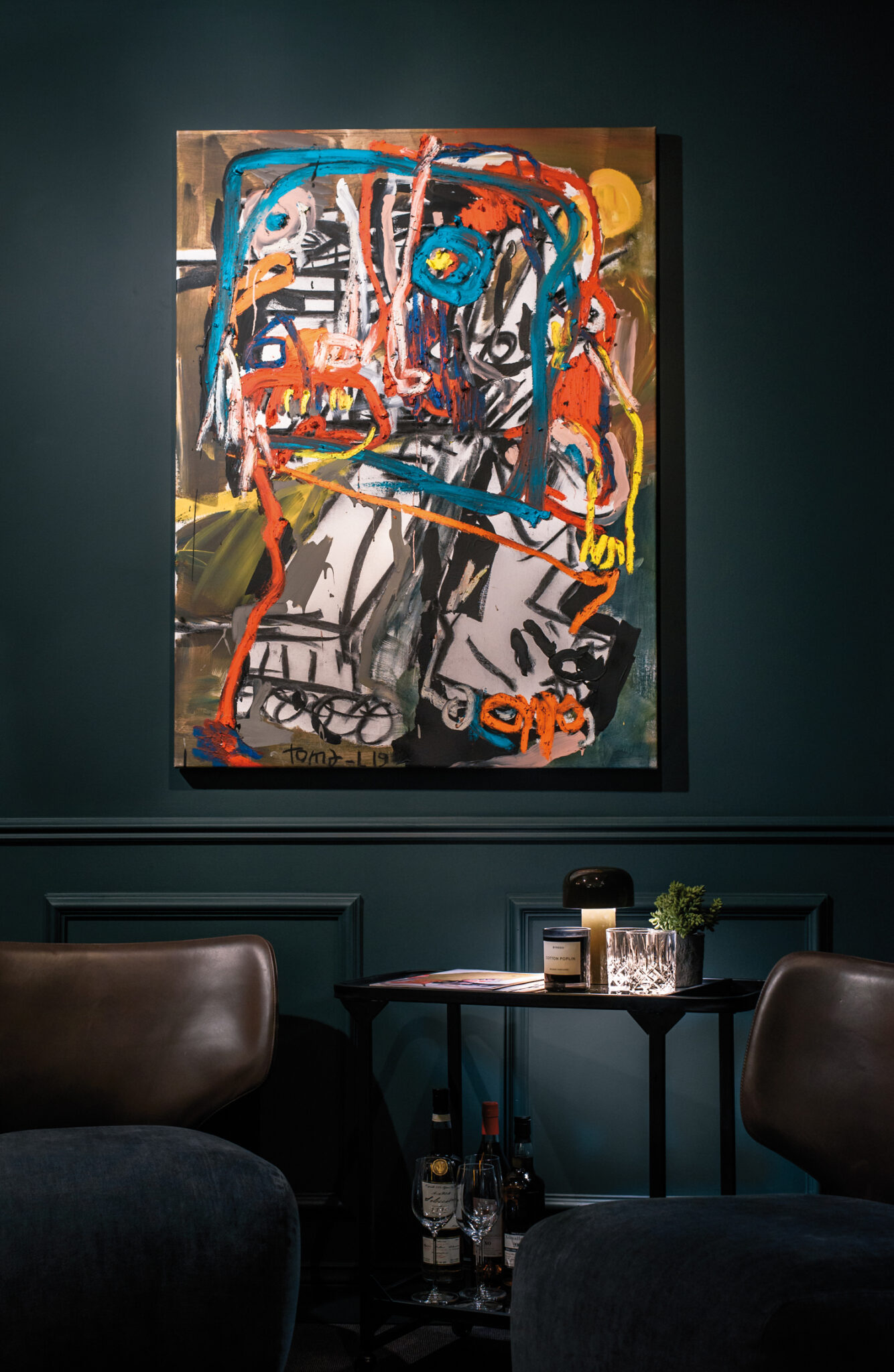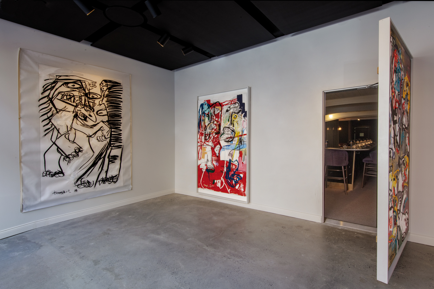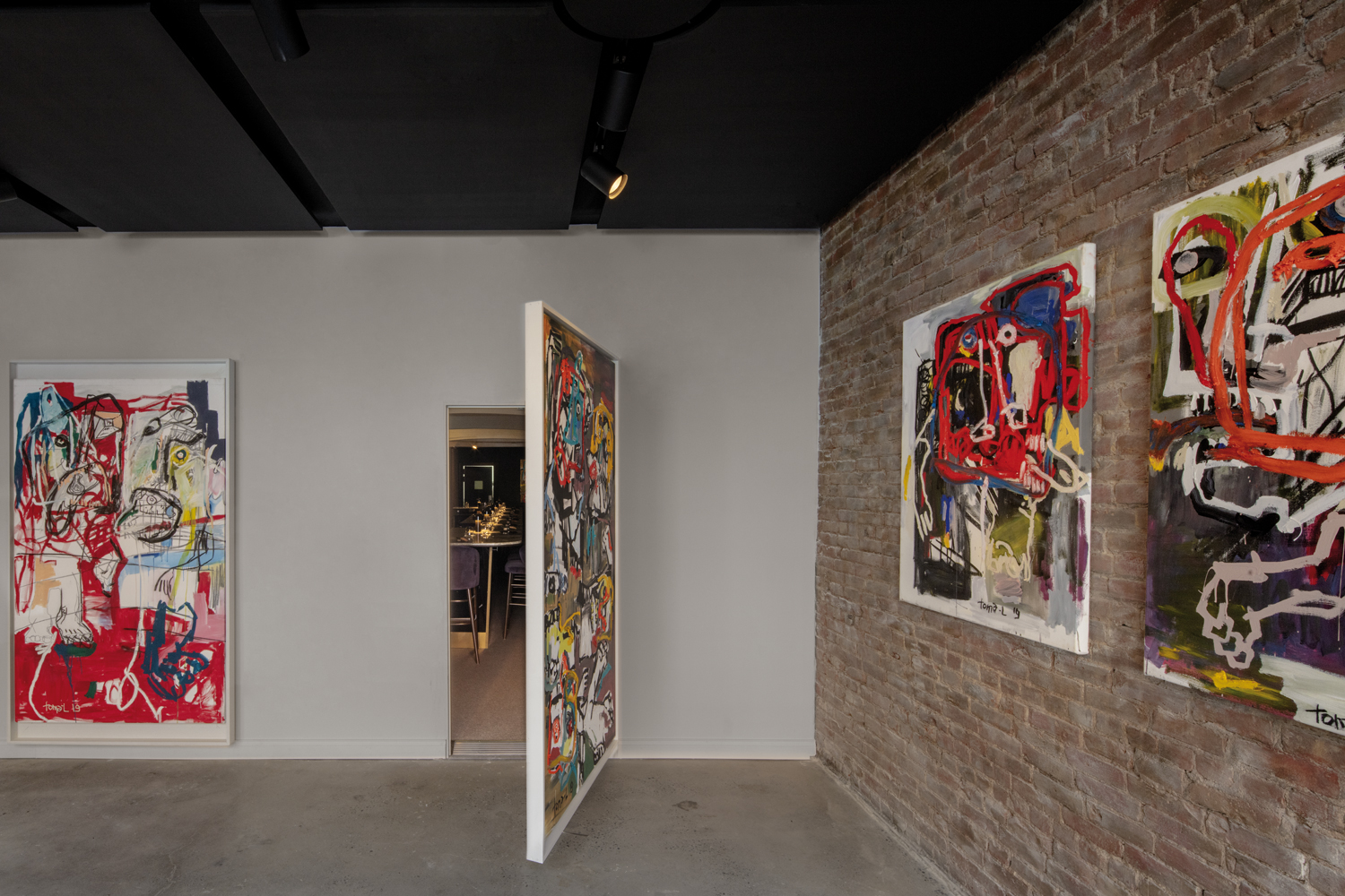 Pour inaugurer l’espace galerie, Toma-L était tout désigné, artiste préféré depuis longtemps de Sampogna. Le chef avait eu un coup de cœur à Paris pour cet artiste hors norme, dont le travail a parfois été comparé à celui de Miro ou Dubuffet. Toma-L a accepté avec joie cette invitation, avouant volontiers sa fascination pour la cité vibrante. Pour Frevo, il a créé 24 toiles inspirées de sa vision, de sa perception de la Grosse Pomme. Les clients peuvent faire l’acquisition des œuvres exposées alors qu’ils dégustent les délices innovants et raffinés concoctés par le chef, dans un décor moderne, élégant, serein, imaginé par le studio de design Søren Rose basé à Copenhague et New York.